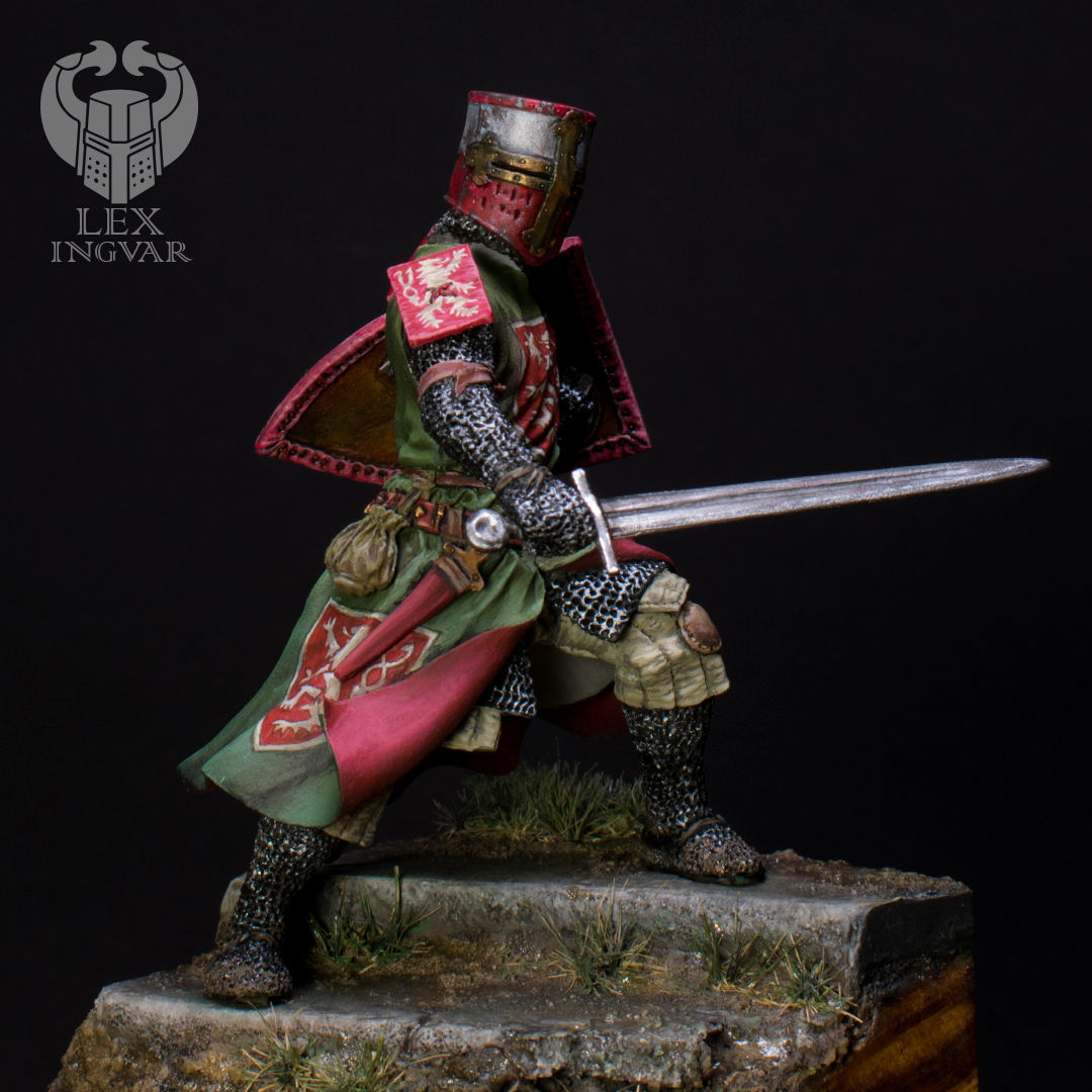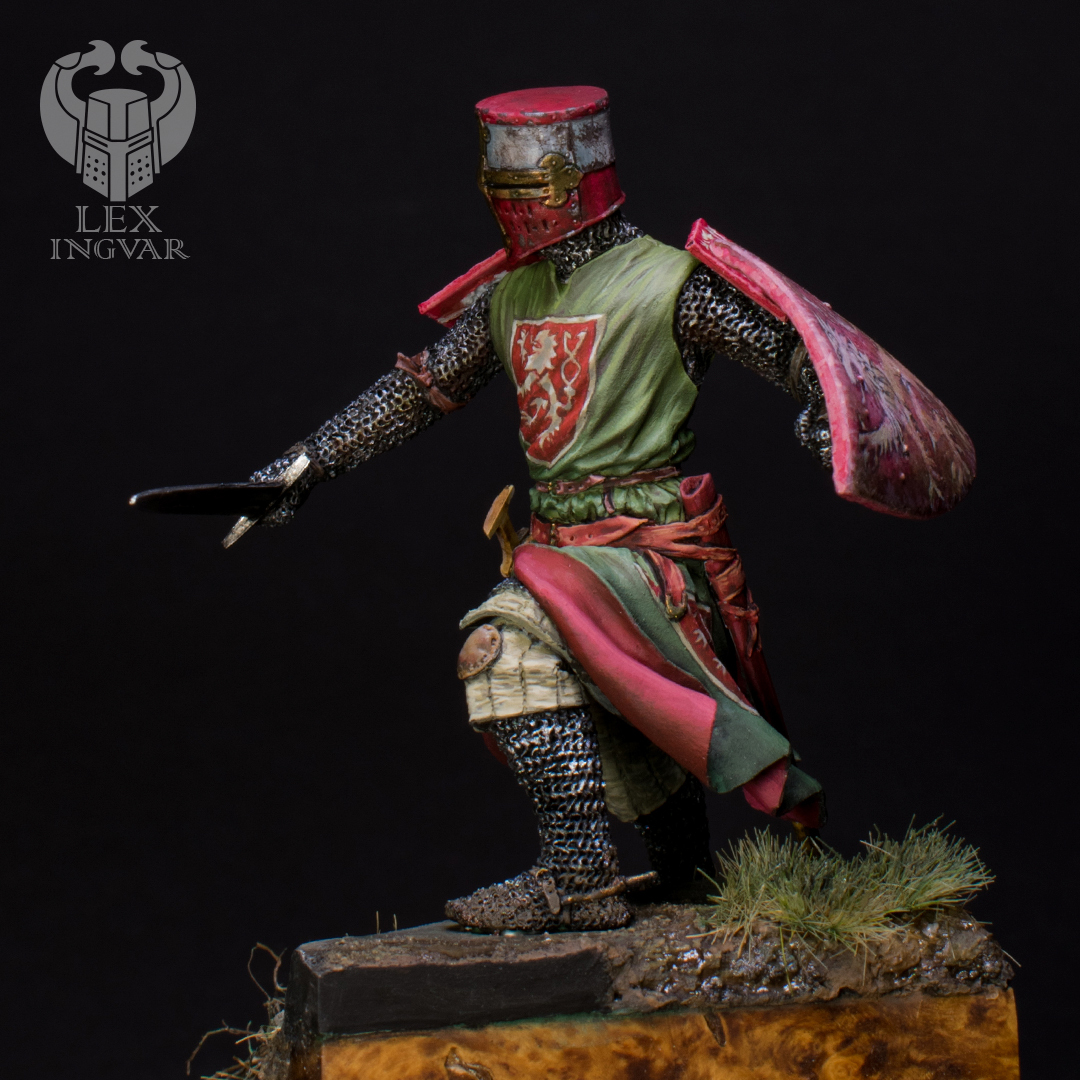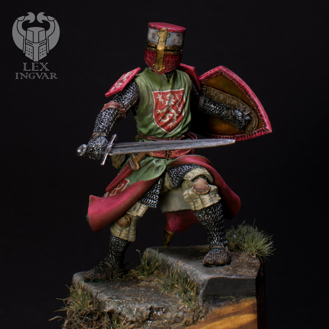 Личность этого господина в свое время достаточно известная. Впрочем, как и всего рода де Монфоров. Конкретно этот прославился большим вкладом во Вторую войну баронов. Зеленый цвет сюрко выбран по причине того, что именно в таком цвете этого персонажа можно увидеть на средневековых витражах.