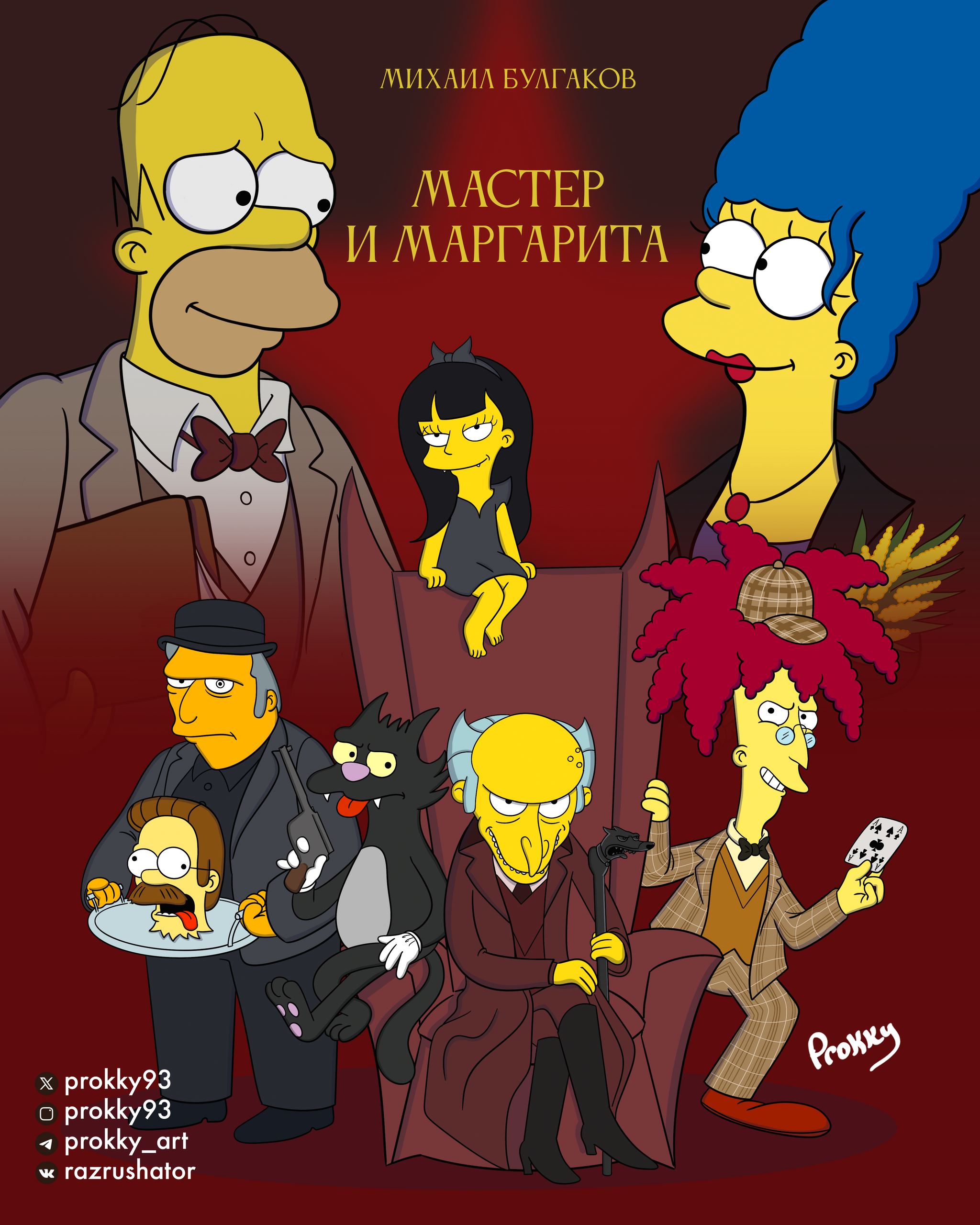 Во время работы меня осенило: полное имя Мардж, Марджори – это же практически Маргарита, а у Гомера буквально «М» над ухом! В роли Воланда – конечно же, мистер Бернс (в сериале неоднократно были намёки на его дьявольскую натуру), а вот свиту собрал из других плохишей – Сайдшоу Боба (Фагот), Жирного Тони (Азазелло), Царапки (кот Бегемот) и дочери преподобного Джессики Лавджой в роли Геллы.