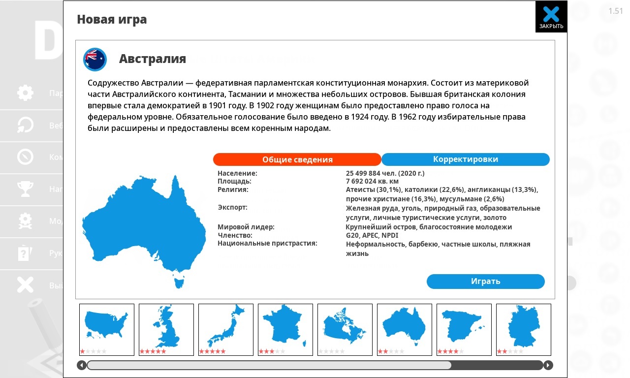 Начать нужно с того, что игра не предлагает 1-2 страны, а много, при этом у каждой есть свои особенности