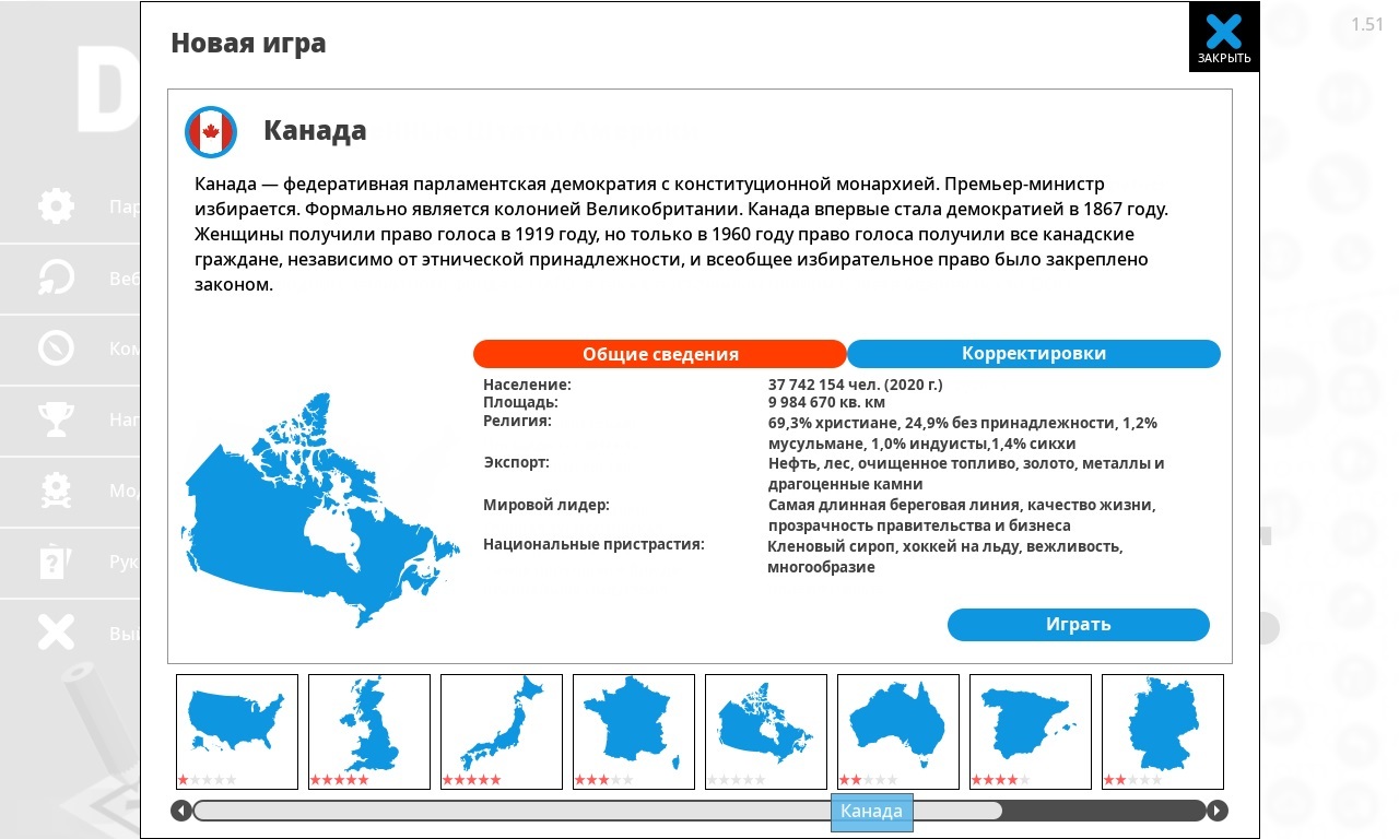 Democracy 4 - политический симулятор, который я бы рекомендовал вам сыграть. Жаль тут нет России или других стран СНГ.