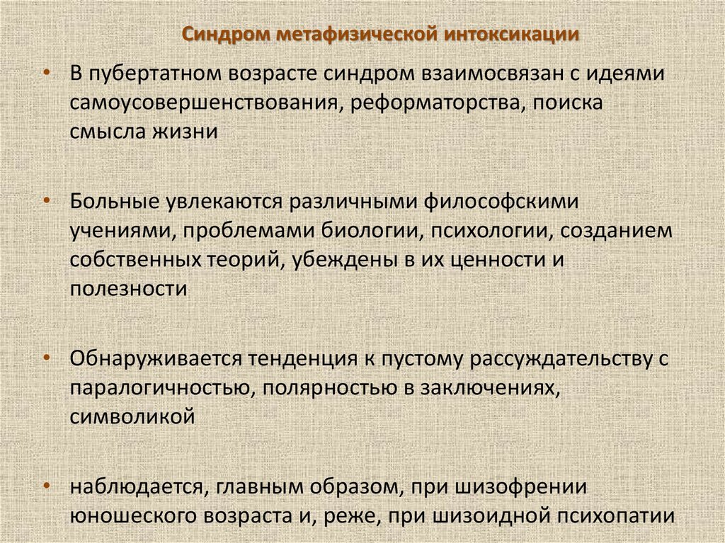 Синдром сверхценных идей — это состояние, при котором у человека возникает одна или несколько идей, которые захватывают его сознание и подчиняют себе всю его жизнь, но при этом имеют реальную основу. Такие идеи характеризуются чрезмерной эмоциональной насыщенностью, доминированием в психике и искаженным восприятием реальности, хотя и не являются бредом, поскольку имеют психологическую понятность и могут быть понятны окружающим.