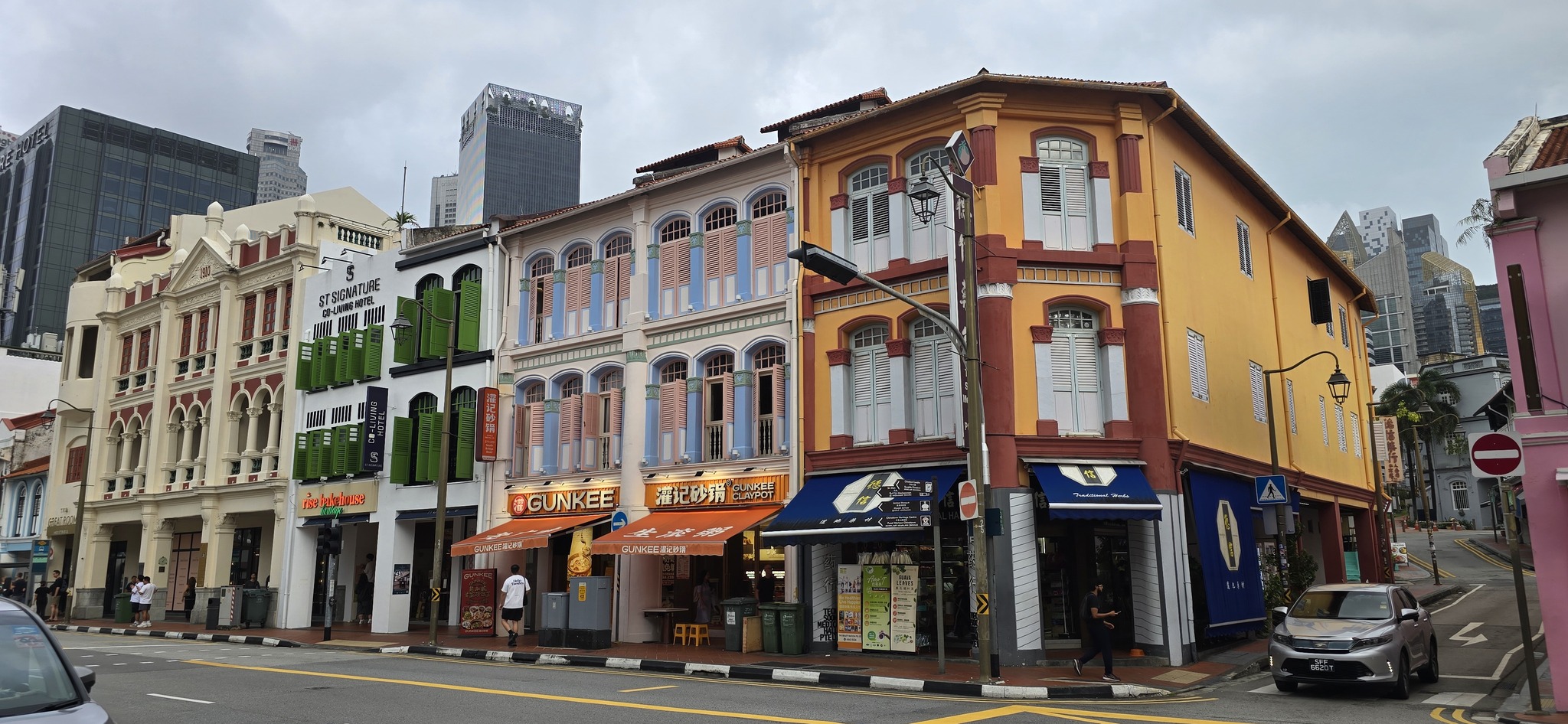 Сингапур - это не только хай-тек и небоскребы. В центре города много старой застройки 19-20 века - такие цветные симпатичные малоэтажные домики, они просто немного теряются на фоне высоток