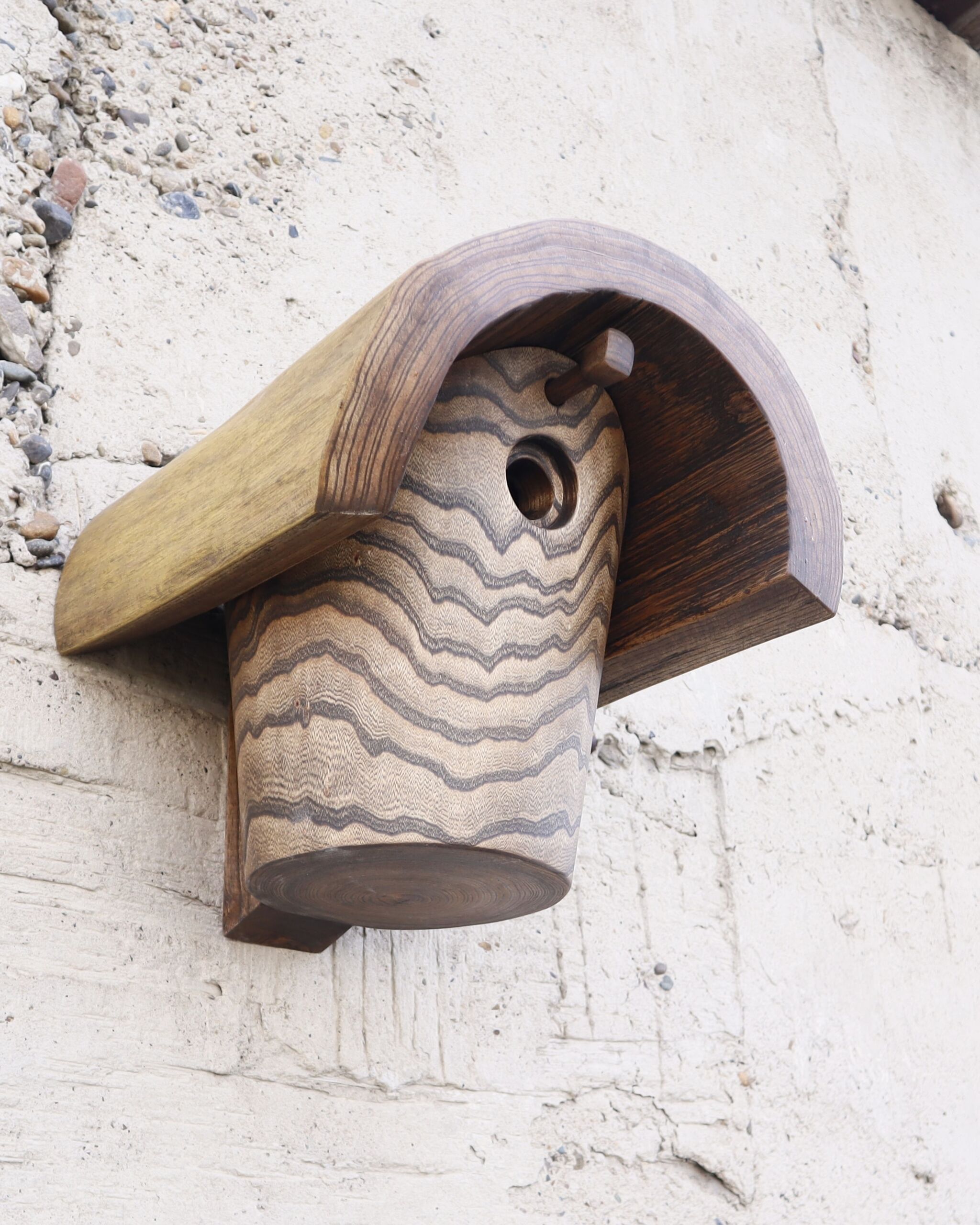 Синичник сделан из карагача. Легкосъëмная крыша, красиво и хорошо выделяется текстура древесины.