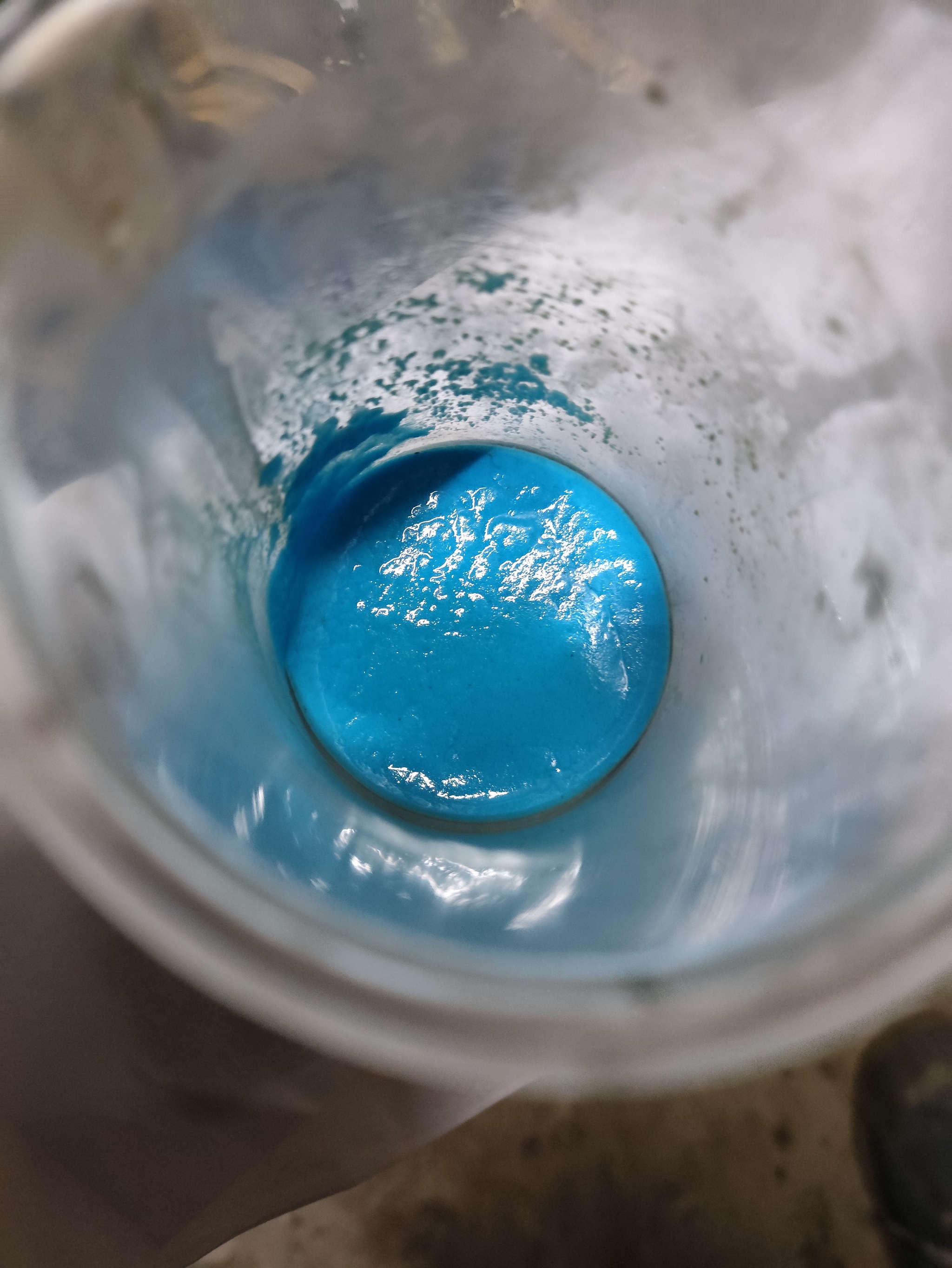 Эта синее вещество выпало из раствора, после растворения небольшой навески породы неизвестного мне происхождения и фильтрации, на гидразин сернокислый. Попробовал его растворить с помощью аммония персульфата, после промывки его водой. Персульфат аммония сильнейший окислитель меди, потому что думал, что это осадок соли меди.