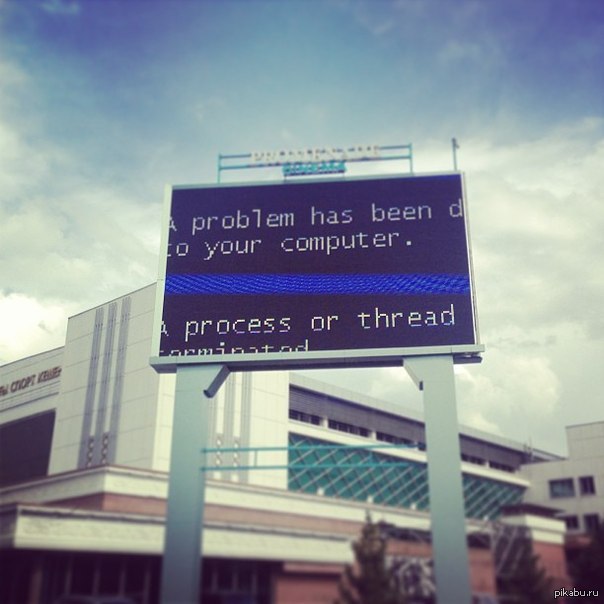 2 NaythanNN Синий экран смерти 10 лет назад Вот так вот завис экран по среди Алматы. Фотографировал на огрызок 5 серии. [моё] Синий экран смерти Наружная реклама Алматы