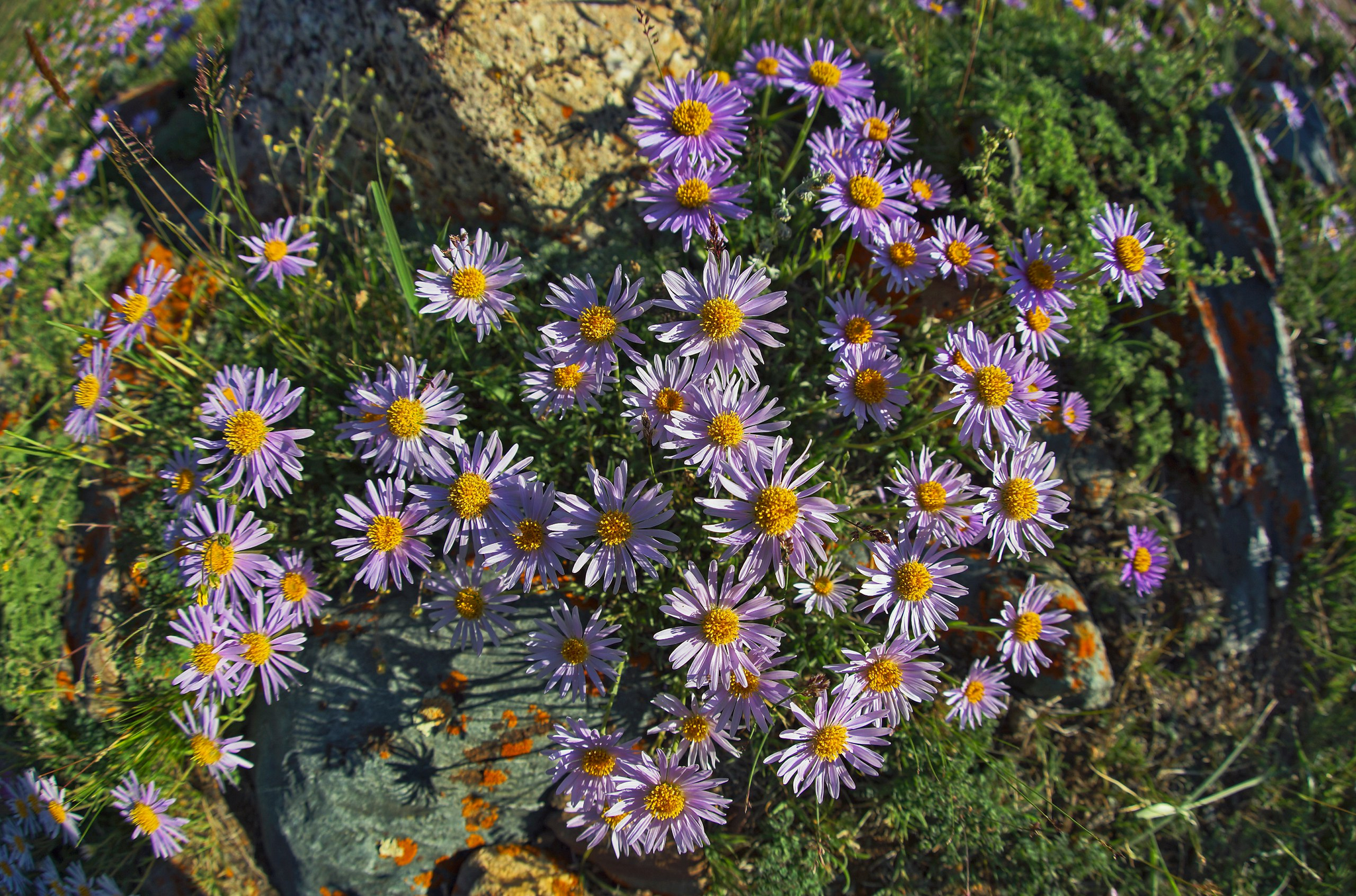 Astra на латинском - звезда. Так и растут альпийские звёздочки на горном небосклоне то тут, то там. Созвездий или "млечных путей" горные астры не формируют. "Светят" одиночно или небольшими группами.