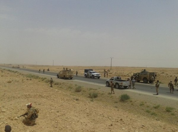 Сегодня был тяжёлый день. Вчера армия продвинулась на 10-13 километров в направлении Табки. Передвинули артиллерию. Сегодня с утра была мощная атака ИГИЛ в результате чего армия откатилась на 10 километров к развязке на Табка-Деер-Эз-Зоор (не путать с Рисафой), где находятся станция перекачки и электроподстанция. В результате этой контратаки сирийская артиллерия оказалась на передовой, в 1,5-2 км. от боевиков. Никогда ранее не видел, чтобы Грады били прямой наводкой.