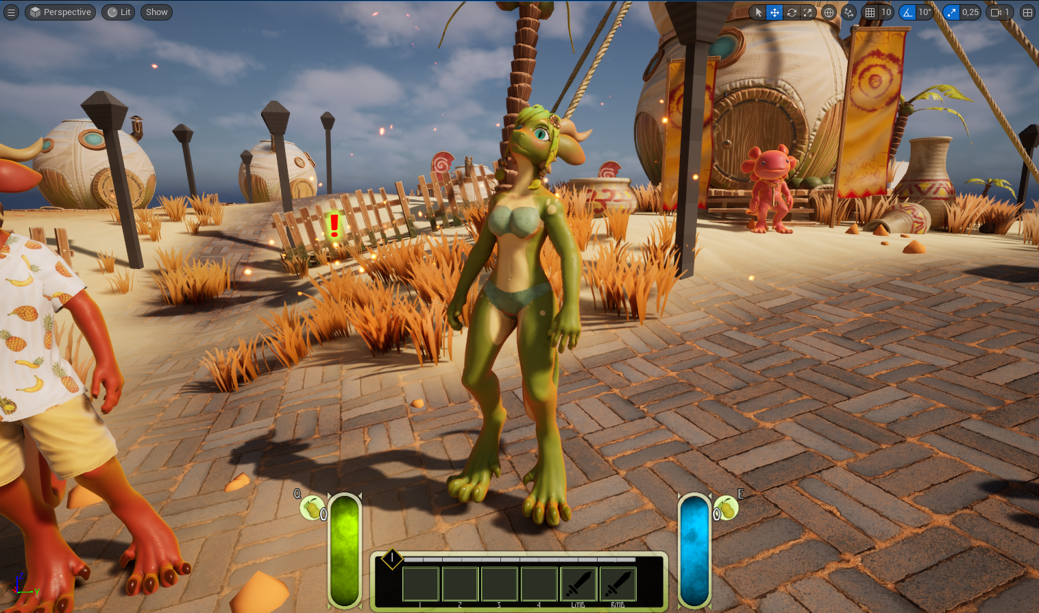 Сначала я не думал делать систему скинов, но так как объекты, прокачивающие персонажа, не имеют визуальных изменений (кроме оружия), всё-таки решил, что так будет скучно, как раз нашёл, как одевать меши в этом ассете. Теперь можно будет найти несколько видов одежды.
