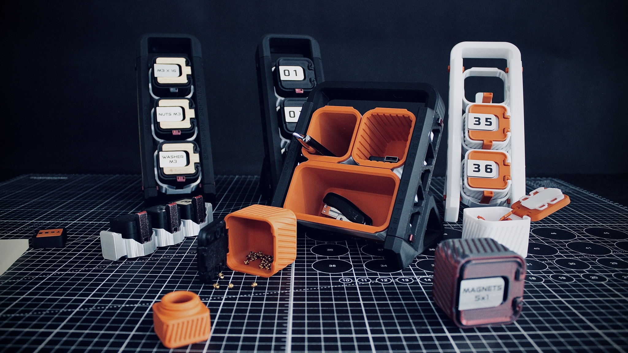 Сейчас я тестирую органайзер для канцелярии — на той же базе, но с новыми держателями TOF, и открытыми контейнерами. Предназначен для канцелярии, но вам решать, что туда класть.