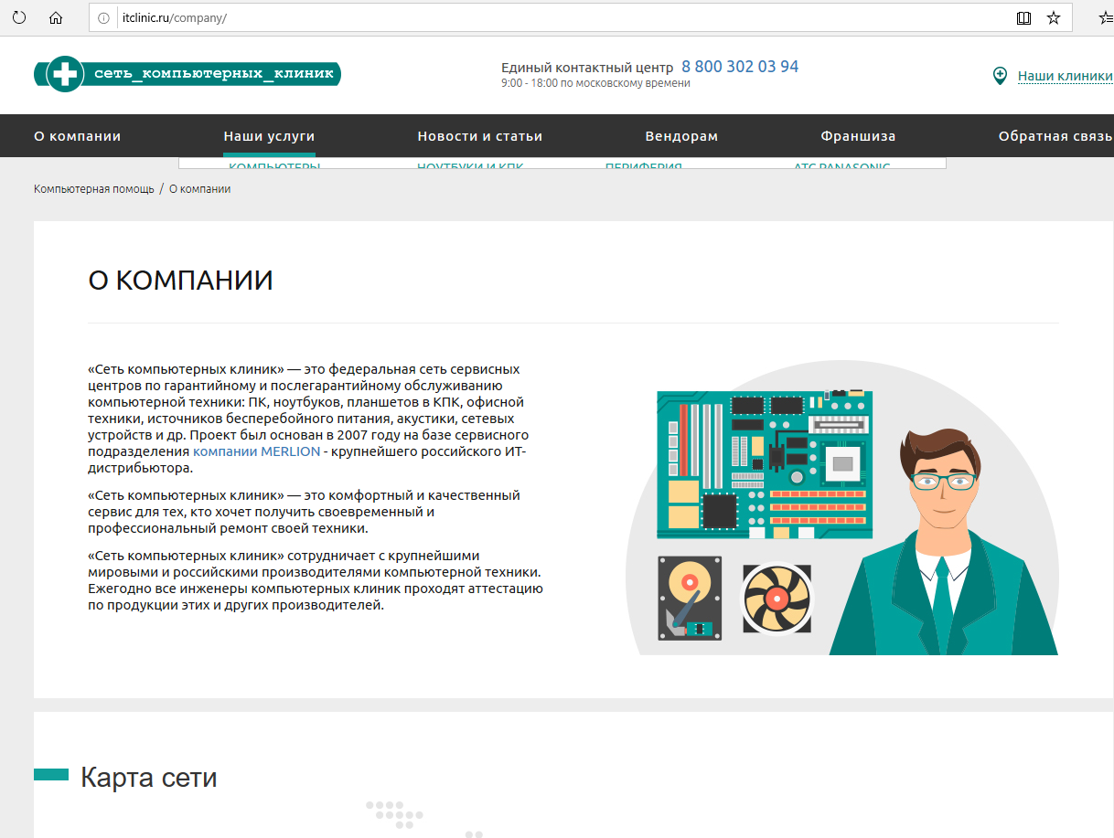 1. Так как, со слов сотрудников Ситилинк, акт выдаёт крутая и независимая контора, на нём по умолчанию должны быть указаны полные реквизиты организации, которые так же должны дублироваться на печати. Но что мы видим по факту: НИЧЕГО! То есть вообще! Никакой информации об организации выдавшей акт на нём нет, кроме печати (если её так можно назвать) с её "вродекакназванием" ITCLINIC!))) Начинаем гуглить и первая же ссылка выводит нас на вот такой замечательный сайт: