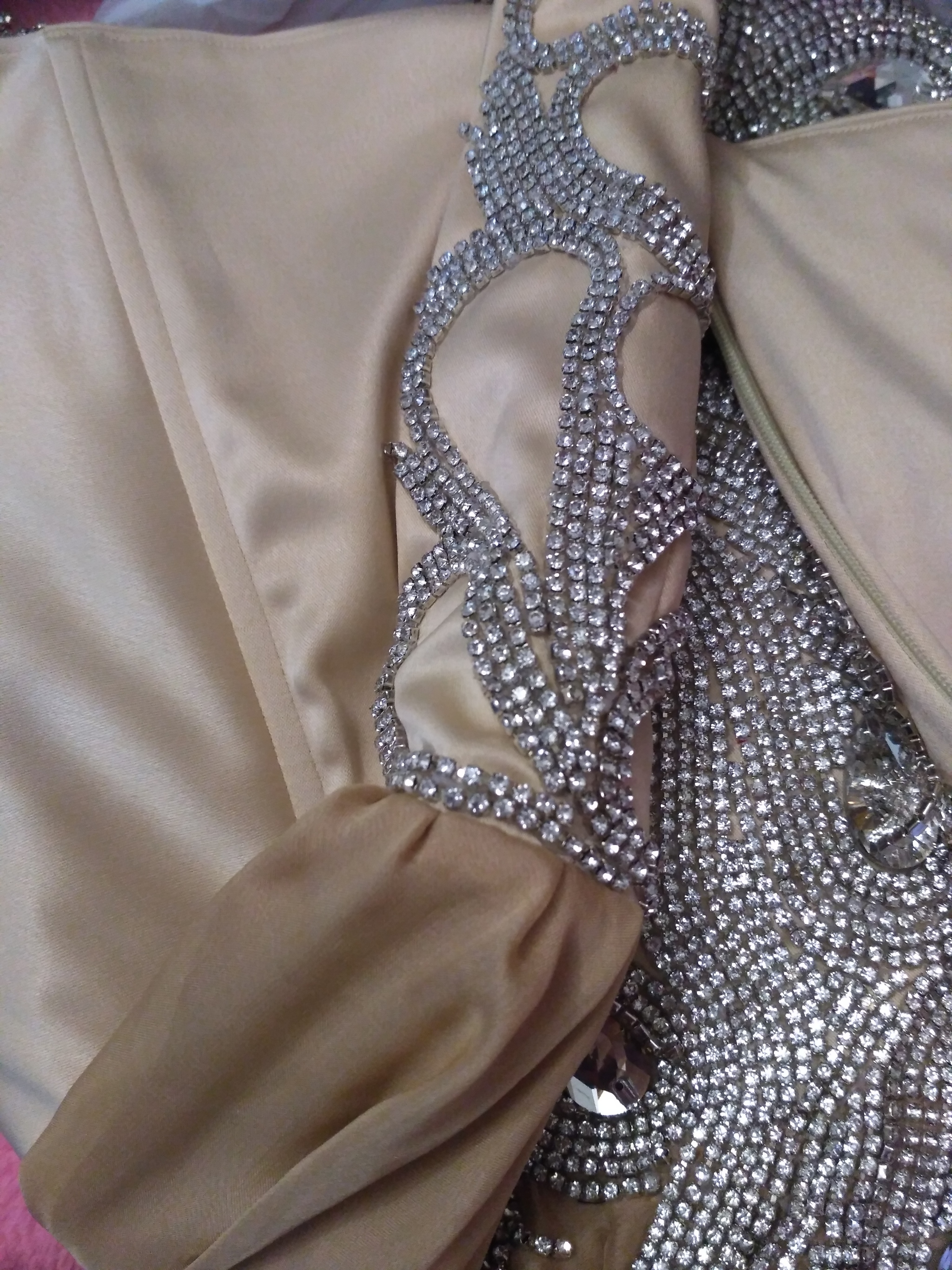 Дело было почти 10 лет назад. Я тогда только осваивала сложные платья и тут от клиентки прилетает такой референс. Платье, если не ошибаюсь, арабского дизайнера за, на тот момент, сумасшедшие 250К. Я была молодая и глупая, поэтому предупредила только, что 100% копию точно сделать не смогу, а по срокам успею даже с запасом. Клиентка согласилась, тем более цена была значительно ниже. Это я уже в процессе поняла, какой подарок делаю😅