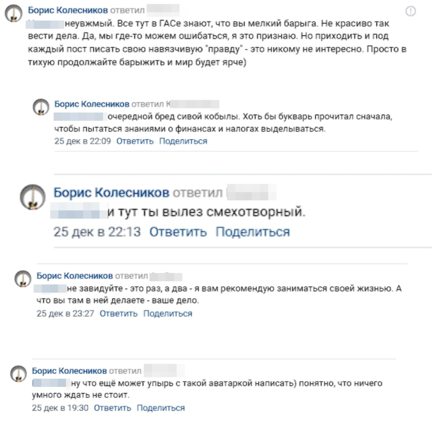 Так как никто мне разрешения на написание данного поста не давал, я замажу личные данные всех участников диалога, кроме самого Бориса.
