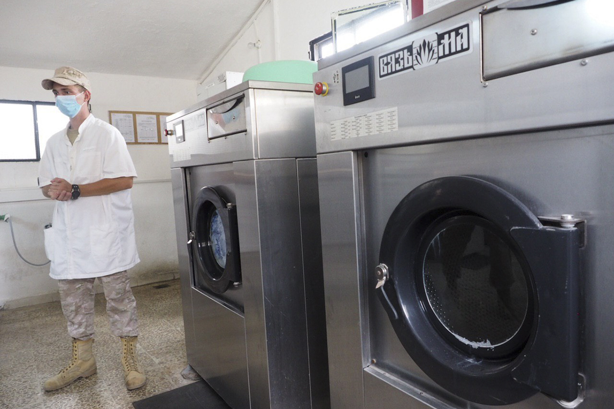 На учениях, во время полевого выхода, солдат пачкается и ему необходимо стирать своё обмундирование. Тазики, доску, щетку и мыло никто не отменял, но предполагаю, что для стирки также вывозится какая-то часть стиральных машин, чтобы у генералов приехавших с целью проверки не возникало вопроса "а как солдатик стирается?!".
