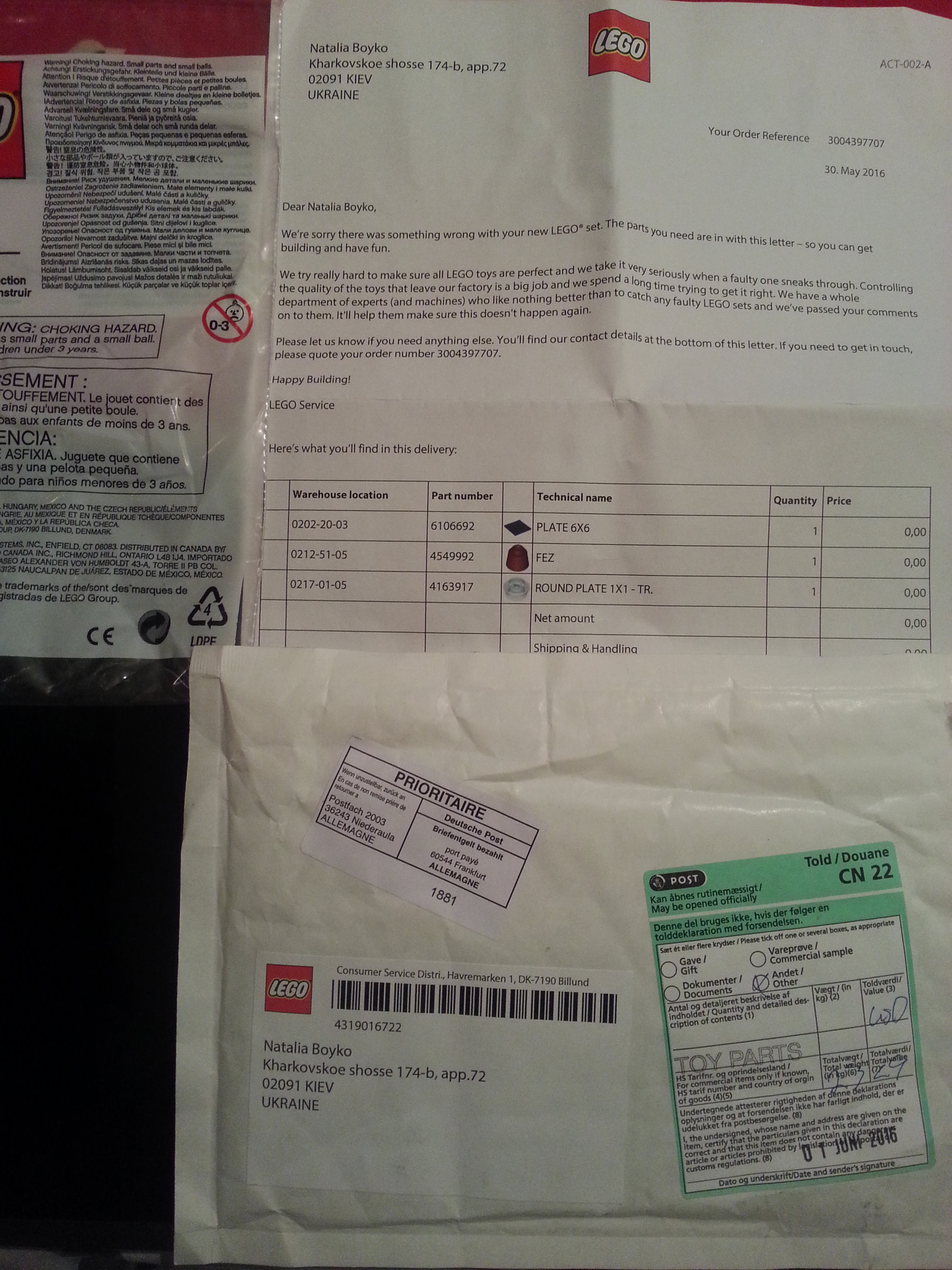 Мне стало любопытно, а доставят ли детали в Украину? И я как раз заказал детали из набора Lego ideas по Доктору Кто. Хотел персонажа или отвертку, но на уникальные "кусочки" был стоп поворот мол "нету в наличии"
