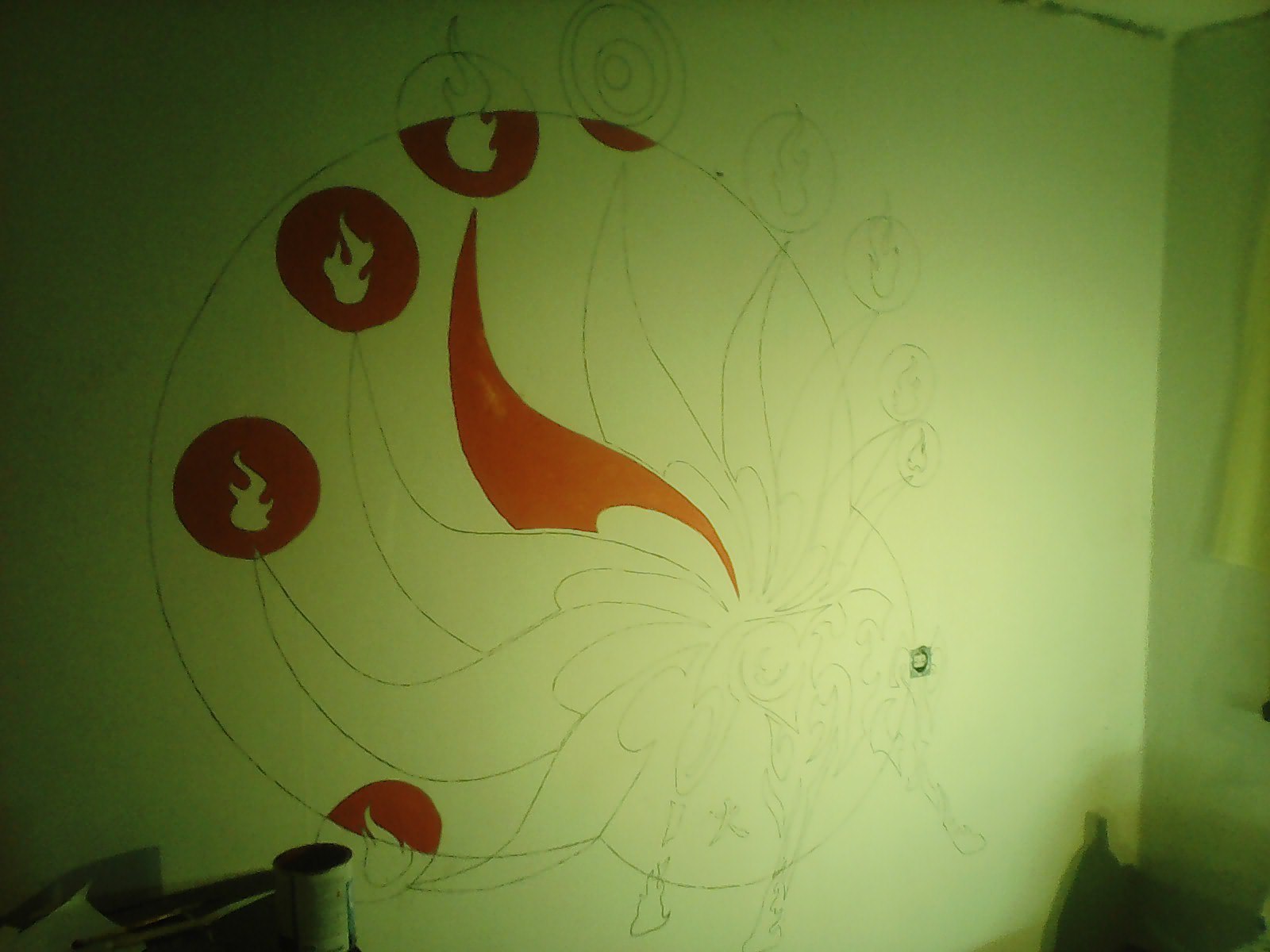 Огненный пони, превратился, в мою интерпретацию Курамы, девятихвостого лиса из вселенной Наруто. Лис? Лис. Хвостов девять? девять. Значит Курама. Было решено, рисую.