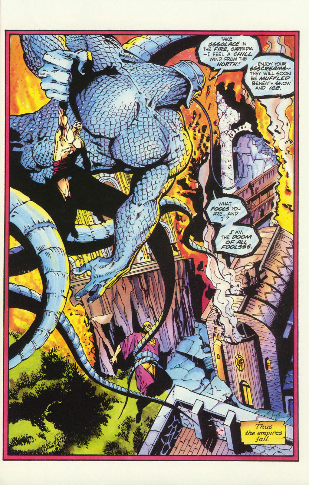 Но самым первым государством, которое пало на Сарпадии, стала империя гномов. С наступлением холодов дикие племена орков и гоблинов, населявшие высокогорье, стали совершать частые набеги на границы империи. Не сумев дать им отпор, гномы вскоре были истреблены.