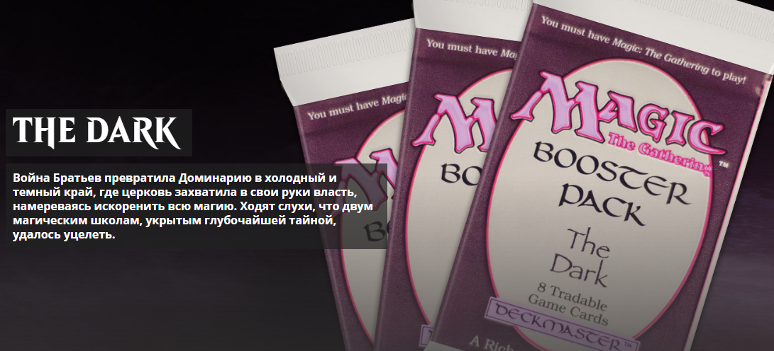 Это уже четвертый выпуск из цикла, посвященного истории ККИ MTG. В данной статье рассмотрены расширяющие выпуски "The Dark" и "Fallen Empires" события, которые относятся к Темным Векам на Доминарии. Ну а в конце, предложенного мной обзора, мы посмотрим на колоды, которыми играли в давно ушедшем 1994 году. Вновь погружаемся в страницы истории.