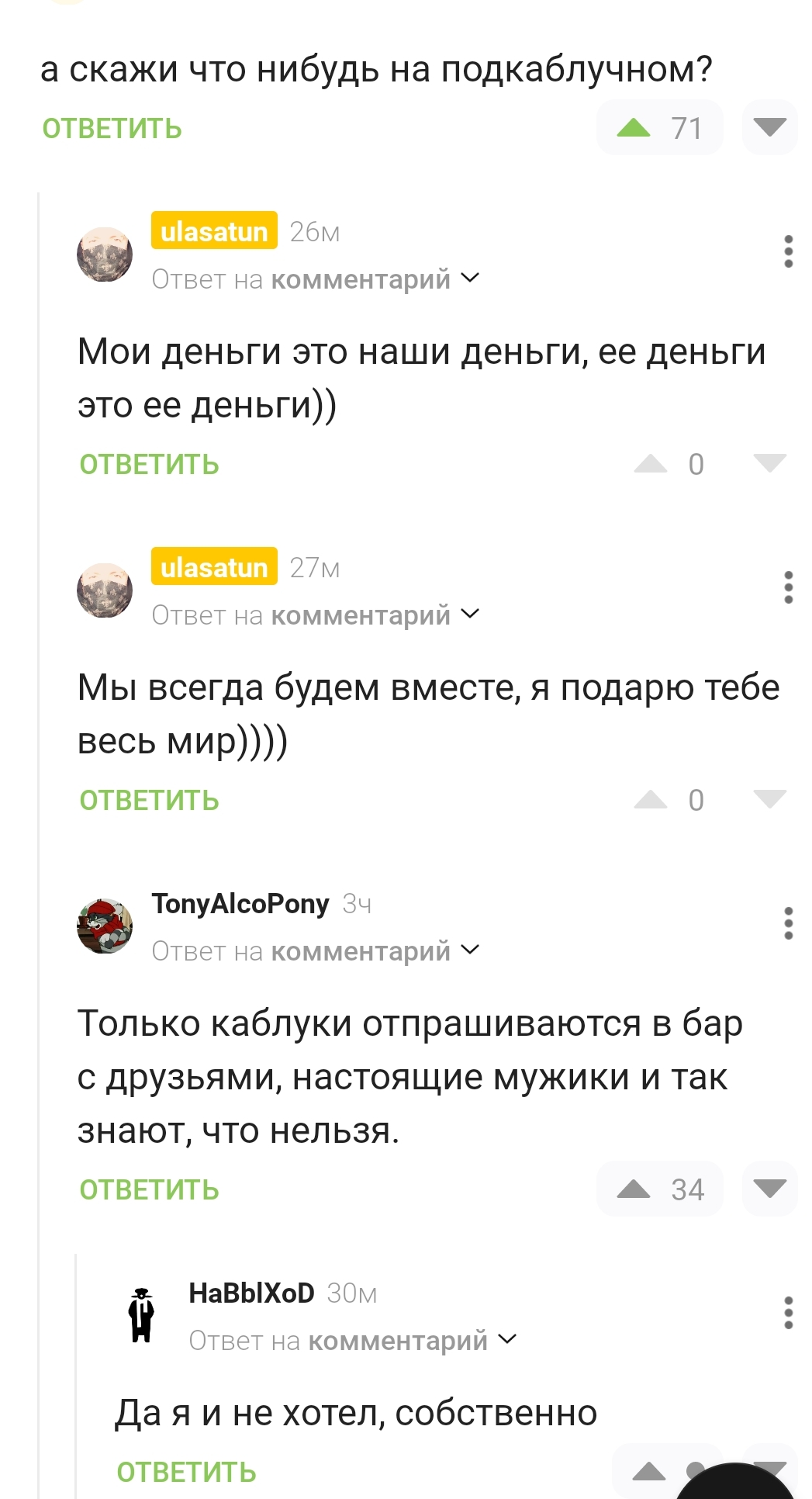 8 ulasatun Скажи что-нибудь на подкаблучном 3 дня назад Юмор Переписка Комментарии на Пикабу Текст Скриншот Женщины Мужчины и женщины Длиннопост 2 Ещё 0
