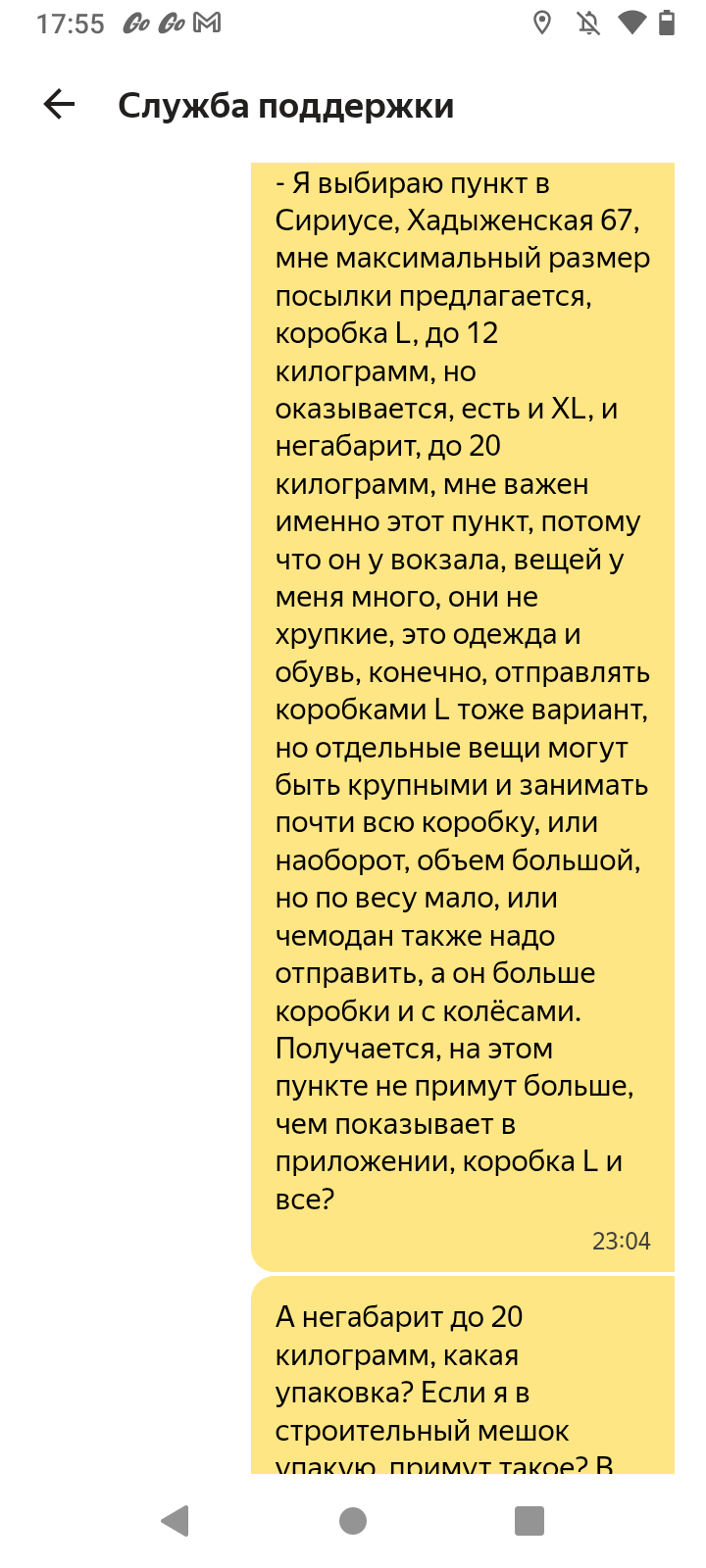 Начинаю связываться с поддержкой, ведь у меня куплен обратный билет, я планировала поездку с расчетом, что приеду, отправлю вещи и той же Ласточкой уеду обратно в Сухум. Но не тут-то было, поддержка не спешила выходить на связь. Я с собой не взяла ни зарядники, ни повербанк, только маленькую бутылочку воды и все, ведь я рассчитывала отправить вещи и тут же возвращаться на вокзал! По телефону с поддержкой связаться невозможно, звонила уже в любые отделы, куда можно было дозвониться и просила переключить, безуспешно. Только ждать ответа в приложении, а это может занять не один день, по их же словам. Заселить в гостиницу на время ожидания ответа поддержки или оплатить покатушки туда-сюда в Абхазию почему-то никто не предложил... Наверное, стоило прийти в офис яндекса в Сириусе и подождать там)