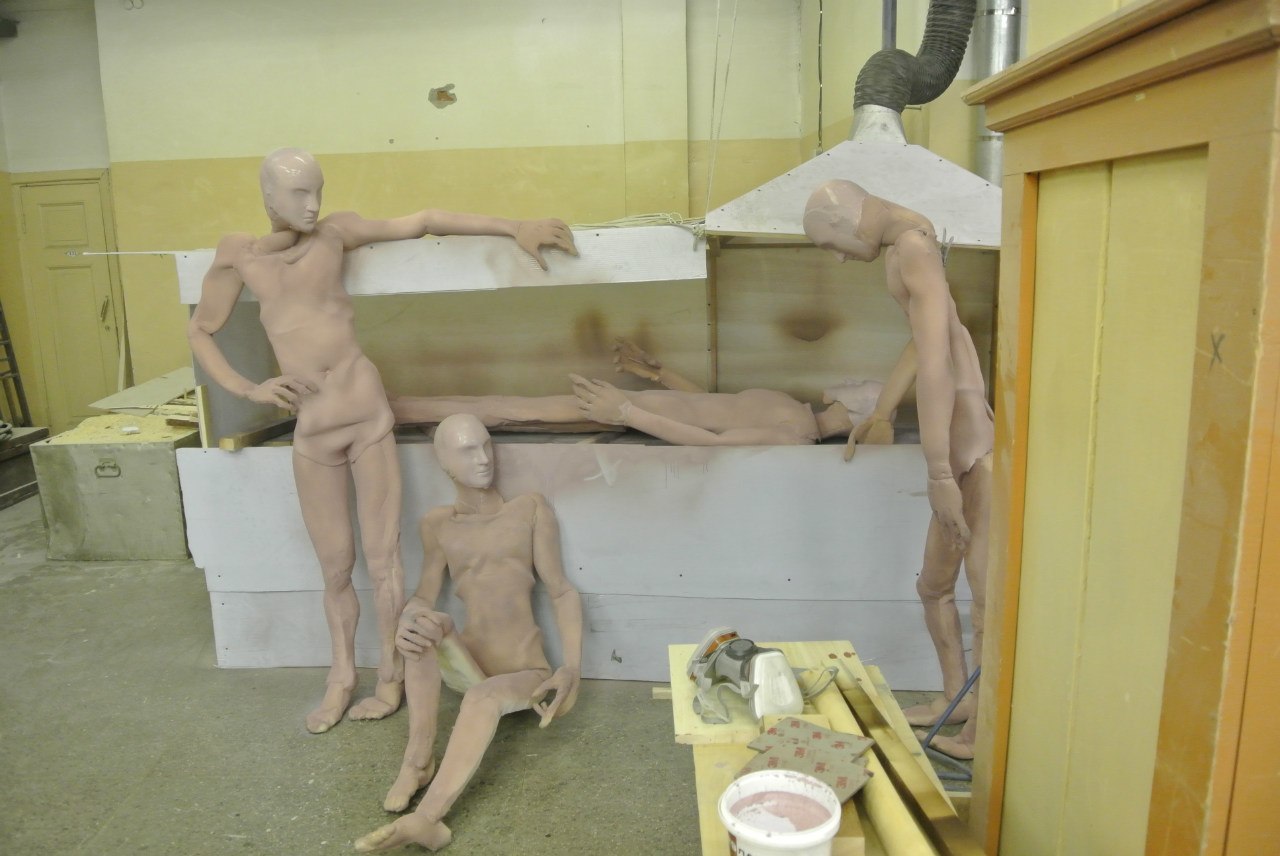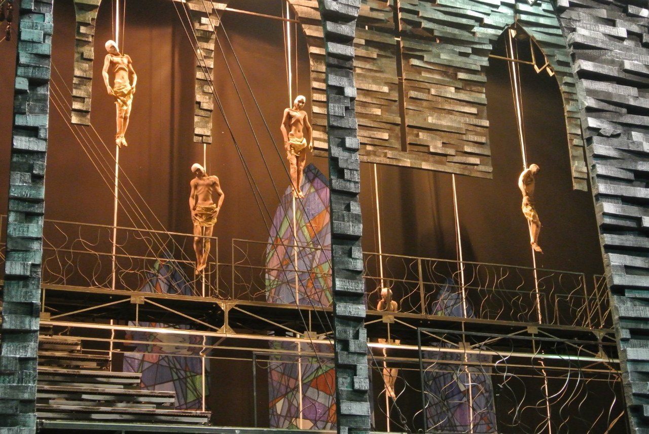Дабы приурочить этот пост по тематике к другим моим постам про театр и театральные декорации, включу сюда фото со спектакля "Месса", а именно поролоновых висельников, которых создавали мои коллеги из бутафорного цеха для этого спектакля в 2013 г. (а еще фото мертвых голов из папье-маше, не относящихся к этому спектаклю)