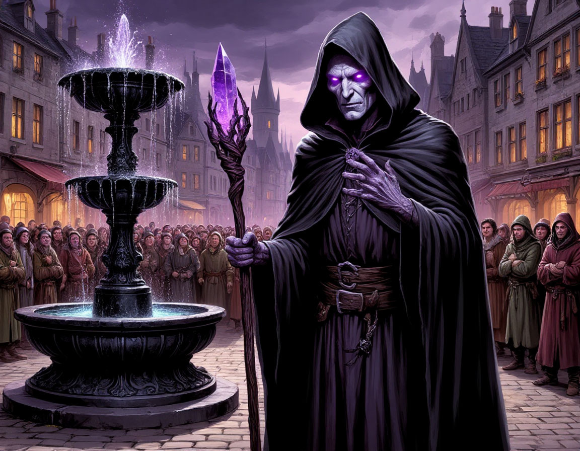 Толпа замерла, когда Вальтар остановился перед фонтаном с серебряными рыбами, которые по вечерам пели хором. Он провел рукой по воде, и рыбы мгновенно замолчали, их серебряная чешуя почернела.