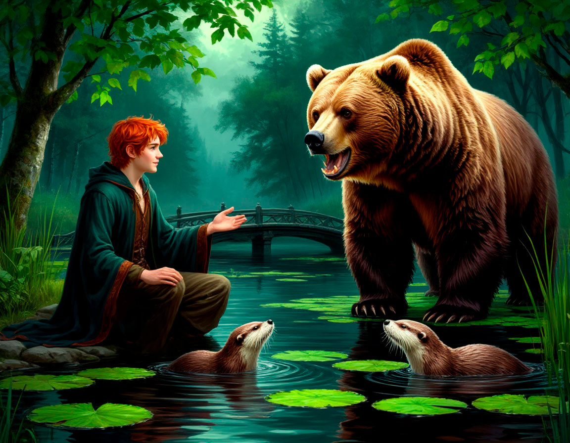 Из зарослей тростника одна за другой появились три выдры. Их мокрые шкурки блестели в тусклом свете, а глаза — черные и блестящие, как сам омут — смотрели на Кириана с почти человеческим пониманием. Они переговаривались тихими щелкающими звуками, и Кириан кивал, иногда отвечая им на их же языке.