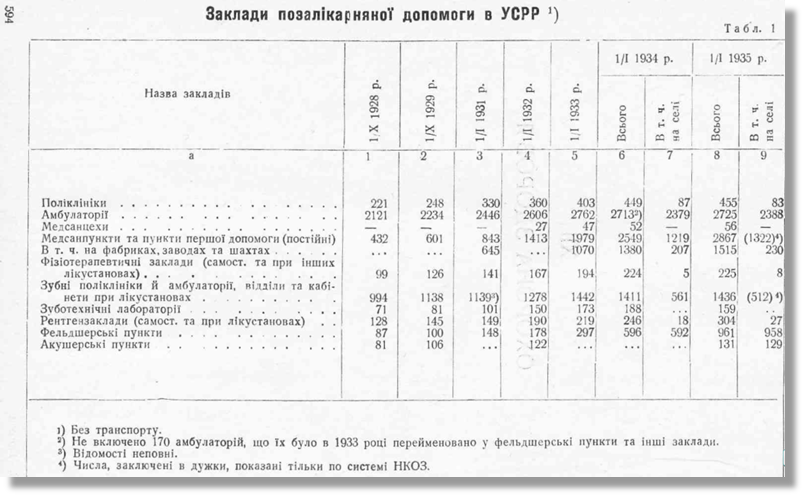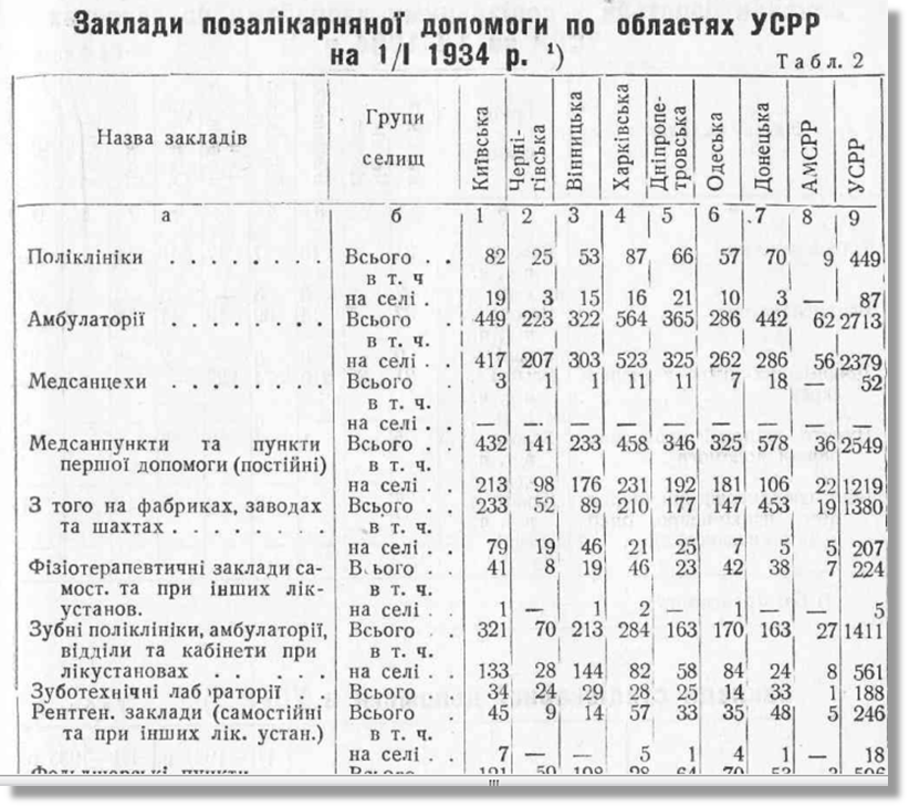 Количество поликлиник в УССР увеличилось с 221 в 1928 году до 449 в 1934 году.