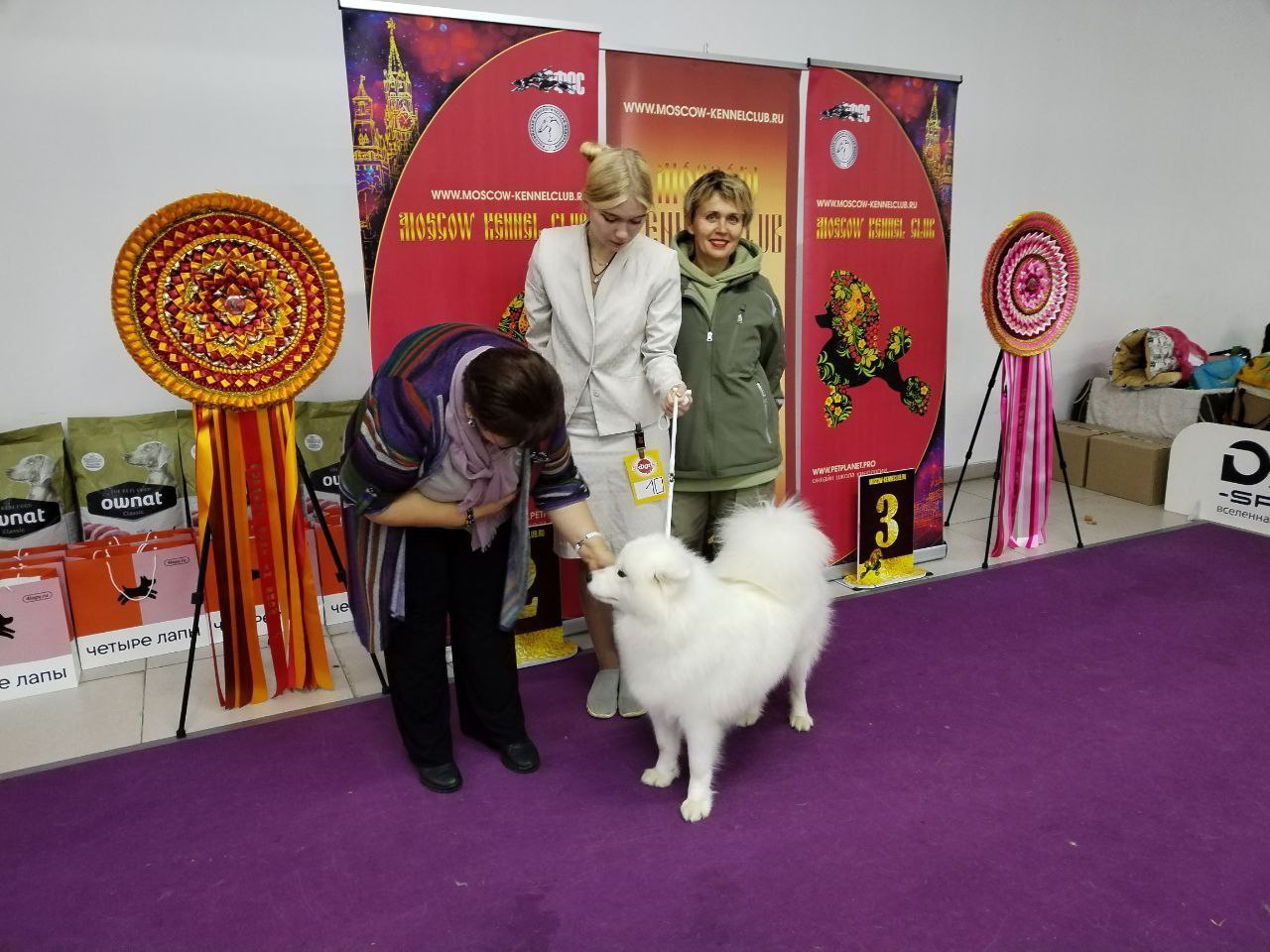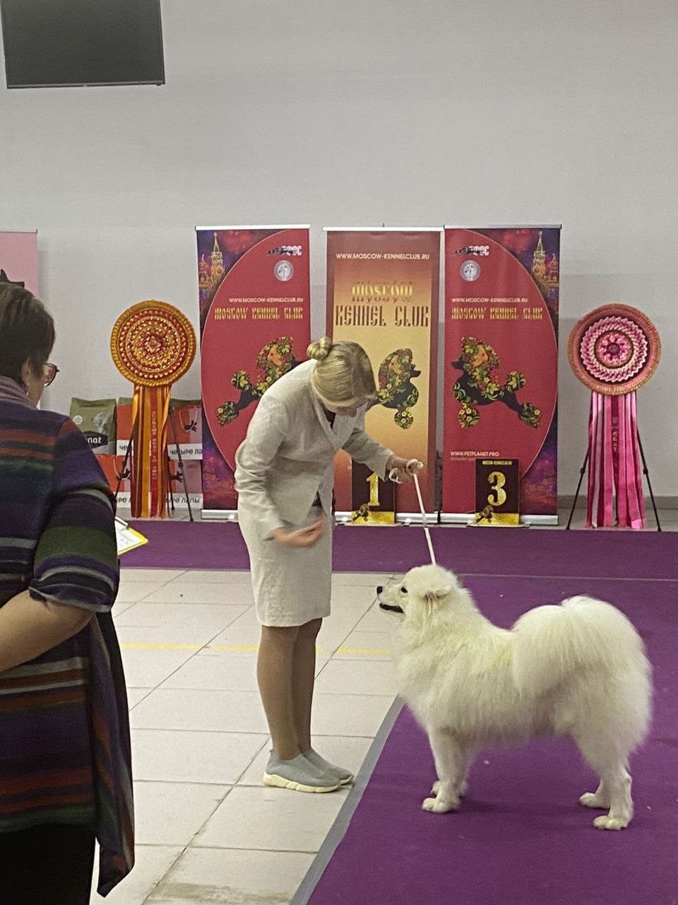Звучит сложно, но ясно, что судьям Сказка понравилась. Они отметили хороший темп на выступлении, размер, "прочные уши, хорошо одетый хвост, отличную шерсть". Также добавили, что собака очень хорошо подготовлена к показу. На выставке было представлено много пород, самоедские собаки соревновались в категории "Тои и собаки компаньоны".