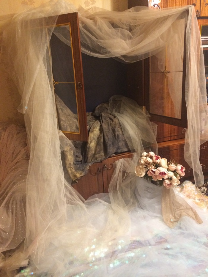 Она самая обыкновенная. Мебель из 90-х, старые обои, покрашенные коричневой краской полы. А хочется сказки) На снимке я уже начала продумывать съемочную зону: ставила свет, представляла каким необычным этот шкаф может стать, если все сделать правильно😏