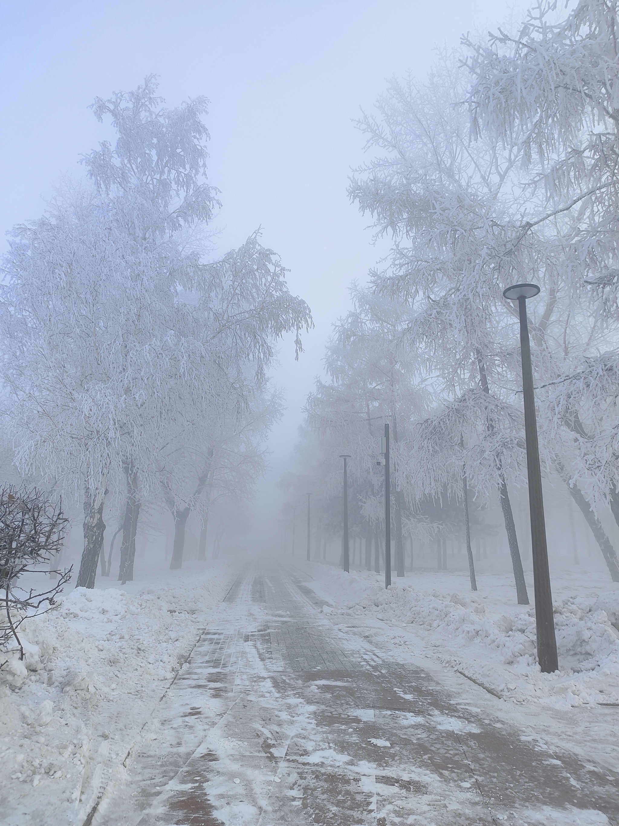Особенно впечатляют заиндевевшие чугунные заборы ограждения.