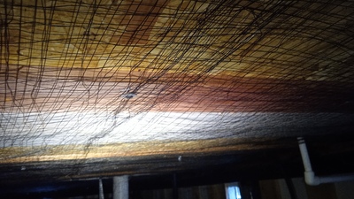 Волны - это и есть черновые полы из дюймовки с шагом 400 мм. А чтобы они не совсем провисали, их подпёрли половой доской с шагом в метр. Короче, из того, что было.