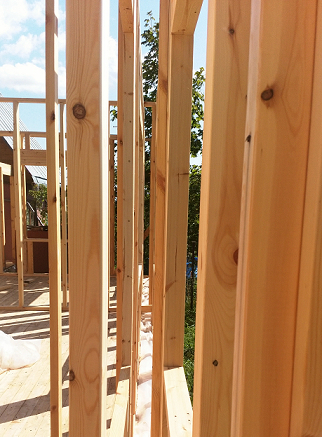 Фреймы (рамы) стен собираются на платформе основания в горизонтальном положении. Таким образом можно пробить нижнюю обвязку гвоздями, закрепив стойки ровно под 90 градусов. Сборка методом волшебного леса приведёт к многочисленным погрешностям и расхождениям положения стоек на верхней и нижней обвязке.