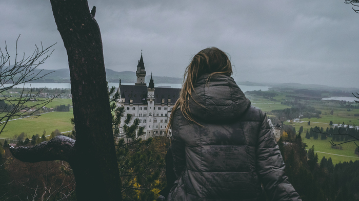 На это утро я завел будильник по раньше потому что прогноз погоды обещал сухую погоду и потом сразу снег. Я хотел увидеть замок в этот промежуток. Или хотя бы пока снег не перерос в снегопад. Чтобы поснимать его с высоты птичьего полета. Но к сожалению, забегая вперед, нам не удалось поймать этого окна между дождем и снегом, потому что его просто не было. Мы приехали и шел уже снег так как это горы и там совсем другой климат чем внизу. По итогу я даже рад, что пошел снег, ведь мы смогли посмотреть на это и увидеть зимнюю сказку наяву. Это было самая лучшая часть нашего путешествия!