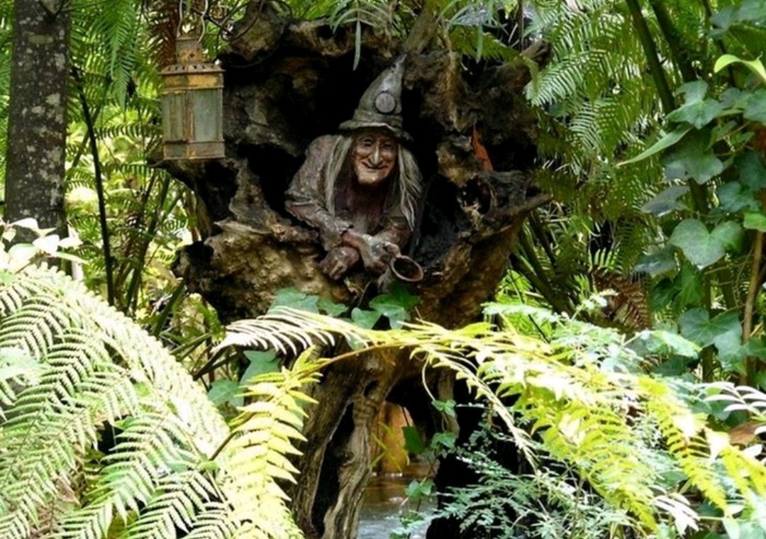 Фантастические скульптуры представляют собой удивительное единение идей творца и природных стихий. Герои преданий здесь в буквальном смысле вырастают из-под земли: вырезанные из корней деревьев фигуры сказочных персонажей и лесных эльфов кажутся естественной частью парка, а индейцы, йоги и улыбающиеся старики - местными жителями, вышедшими встретить долгожданных гостей.