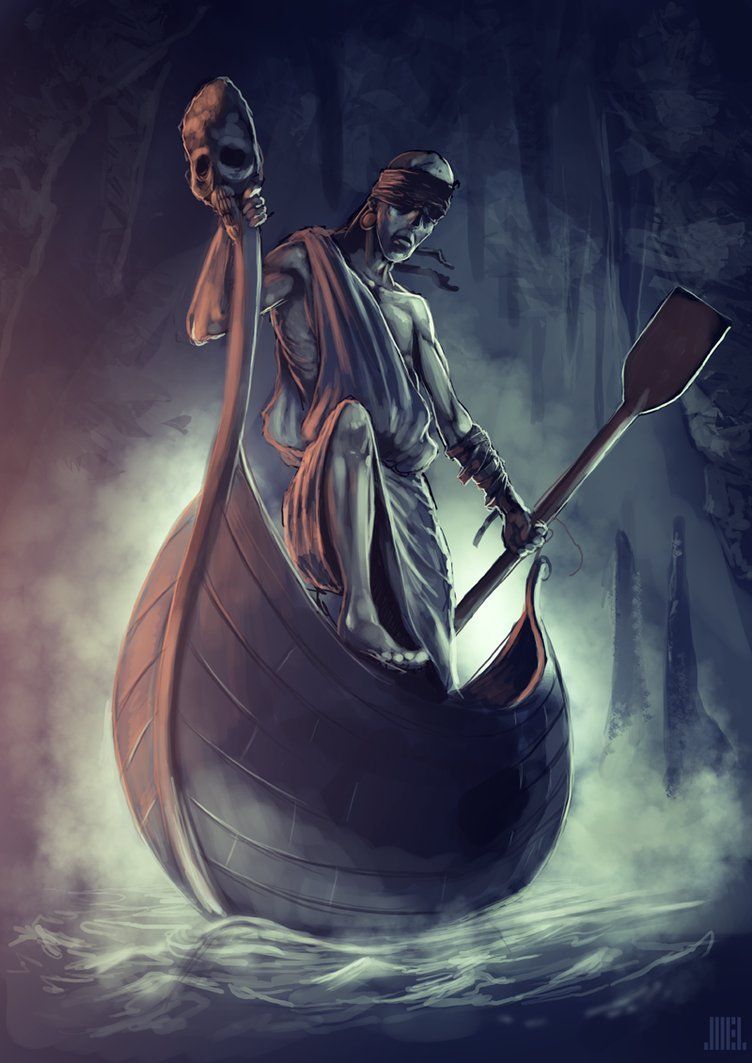 Я сидел спиной к воде, и не сразу понял, на что смотрит мой друг. Его глаза расширились, взгляд сфокусировался на чем-то прямо ПОЗАДИ МЕНЯ. Предчувствуя неладное, я медленно повернулся, ожидая увидеть нечто, что разделит мою жизнь на «до» и «после». Наши родители сидели далеко и никак бы не смогли прийти к нам на помощь вовремя. Там, над водной гладью вздымался, ощерившись щепой, нос ржавой, выкрашенной в грязно-голубой лодки. Там, опираясь на весло, похожий на мифического Харона из древнегреческой мифологии стоял дядька. Уродливые, высеченные будто из гнилого пня, черты лица его, казалось, были перемешаны в каком-то случайном порядке, приоткрытый рот источал смрад, демонстрируя кривые, крепкие, крупные зубы. Крошащиеся ногти на крупных бледных руках хищно и нетерпеливо царапали весло. Одет он был в омерзительные лохмотья, увешанные паутиной и испачканные чем-то красным, а в лодке плескалась мутная стоячая вода с ряской. НЕТ.