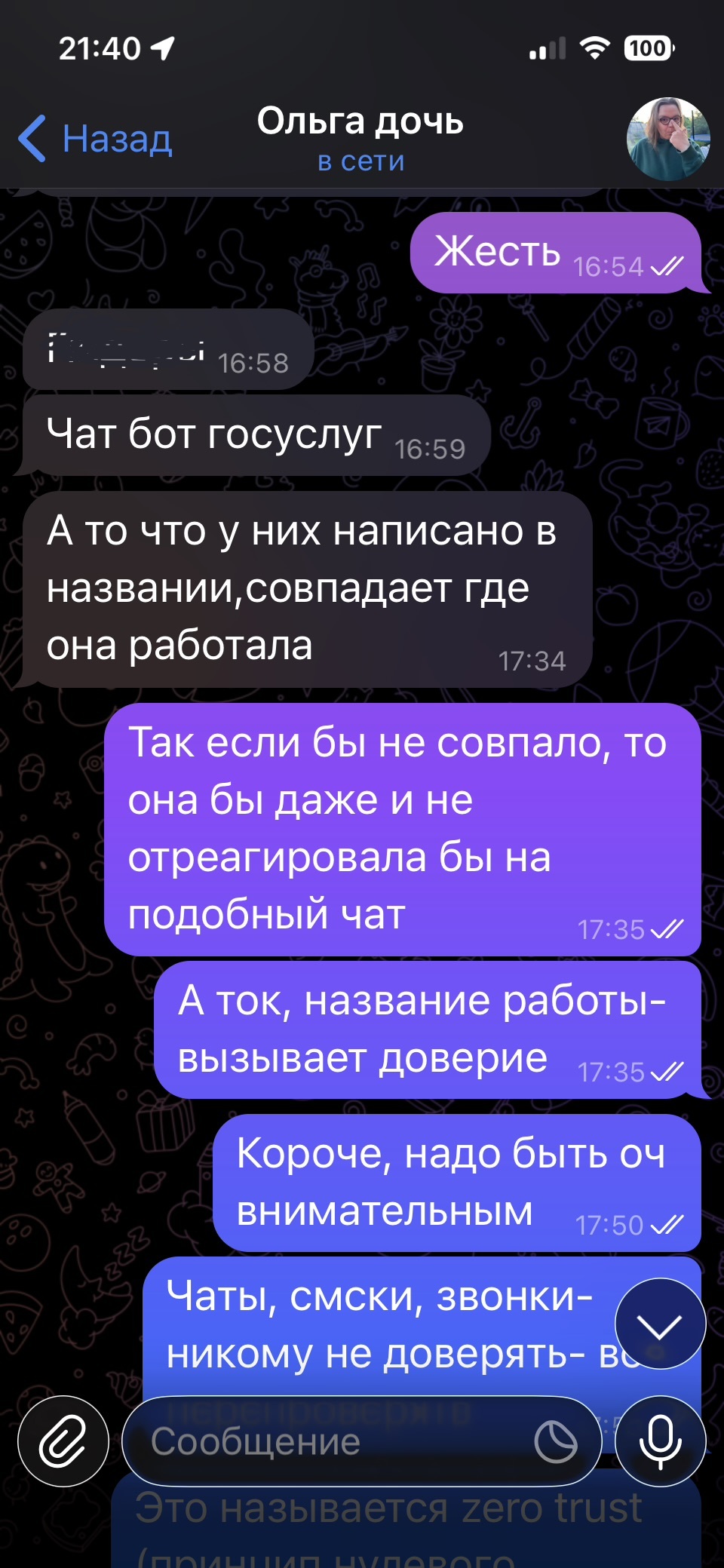В общем, её свекровь добавили в чат организации в которой она когда то работала, в чате уже были некие люди, я так полагаю такие же левые аккаунты. В чате сразу было выложены имена и фамилии нескольких людей, с просьбой подтвердить актуальность данных, в том числе и свекрови для оцифровки, в противном случае пенсия будет начисляться не правильно, пожелали продуктивного дня даже :)