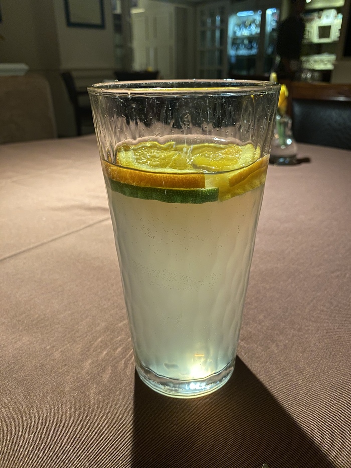 После заказа еды нам предложили принести напитки, но так как я был за рулем (до ресторана было 130 км, это почти час езды, такси бы вышло дорого) я выбрал себе лимонад, супруга меня поддержала и поэтому ниже фото только лимонада ( по факту можно выбрать только 2 варианта- вино или лимонад, вино очень хорошее судя по отзывам, но я не смогу подтвердить).