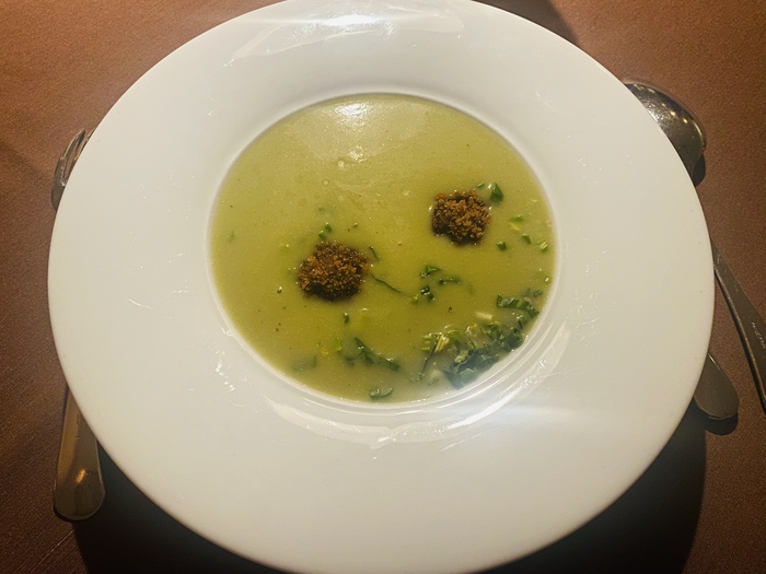 Говядина с хлебом, видимо, была в этих шариках) подача была оригинальная- принесли тарелку с шариками и после из кувшина долили бульон. Супы понравились, порции были большими и собственно я уже был сыт. Но у нас только половина программы)