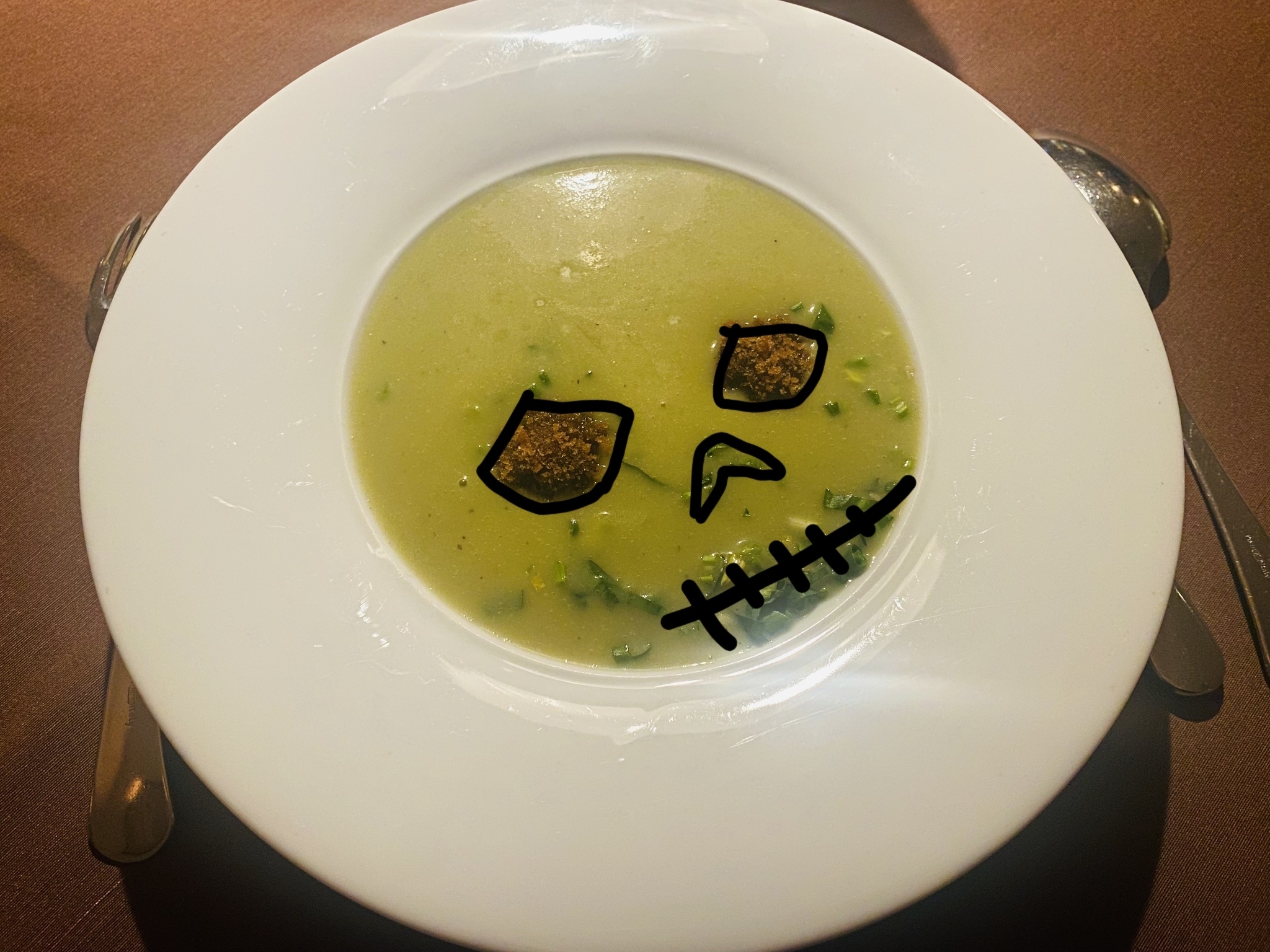Это был «суп». Точнее ванильный коктейль в тарелке и сверху плавали 3 зефирки.