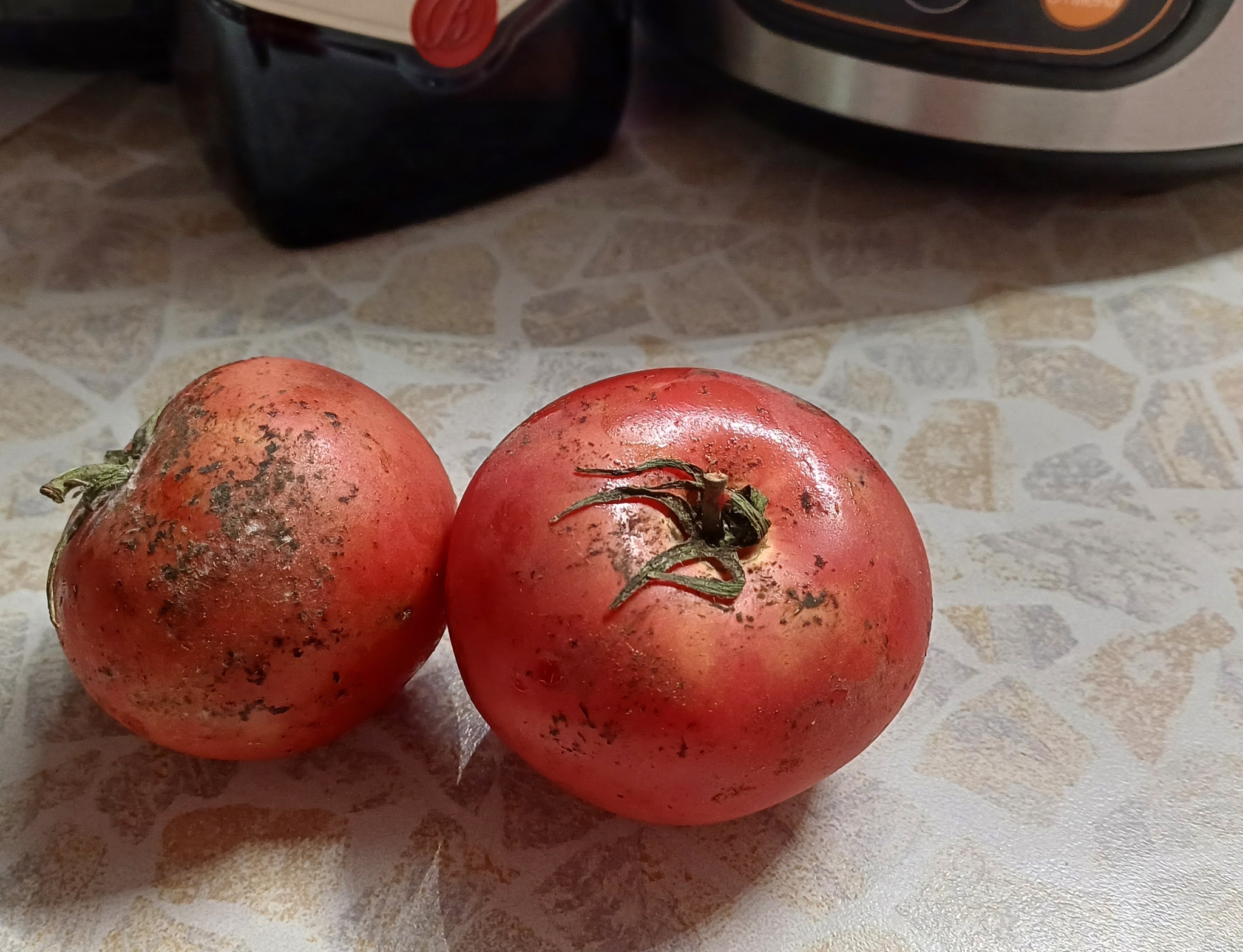 А помидор 1100 вместо 1500. Печаль конечно, но не возвращаться же. Думаю хрен с ним, всё равно удачно купил. Полез в пакет - мать моя женщина, а там все помидоры мало того что мягкие и переспелые, так половина еще и в мазуте какой-то. Типа вот так:
