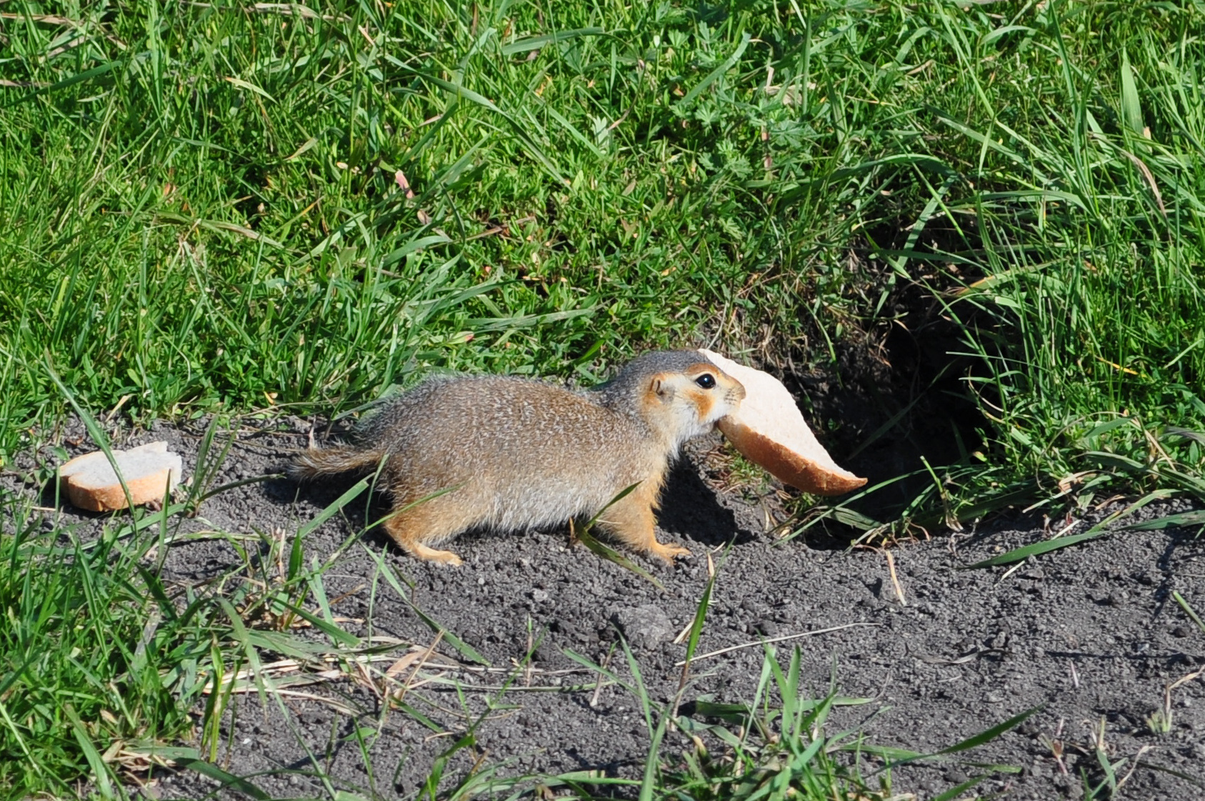 После победы суслик неторопливо перетаскал хлеб в свою норку и больше не показывался.