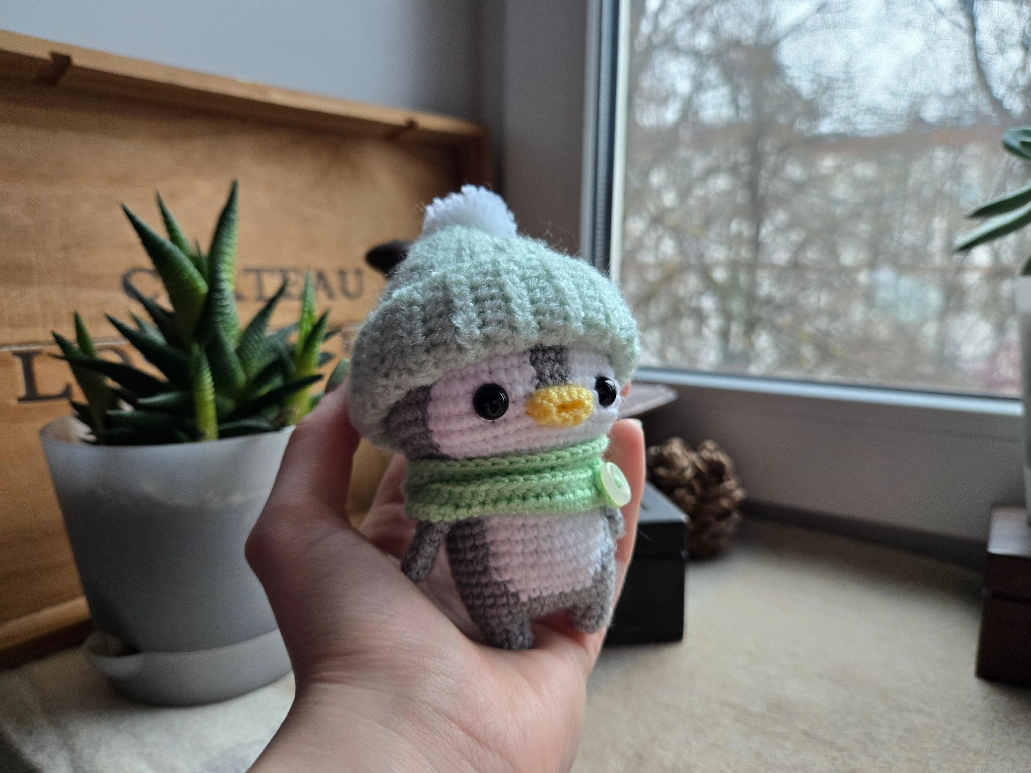 У меня уже был пингвин в ассортименте, но, честно говоря, он мне разонравился. Поэтому я решила переосмыслить эту игрушку и сделала её на 20% круче (хотя, мне кажется, на все 100%!). Назвала его Катя, и, кажется, это имя ему очень подходит. 🐧