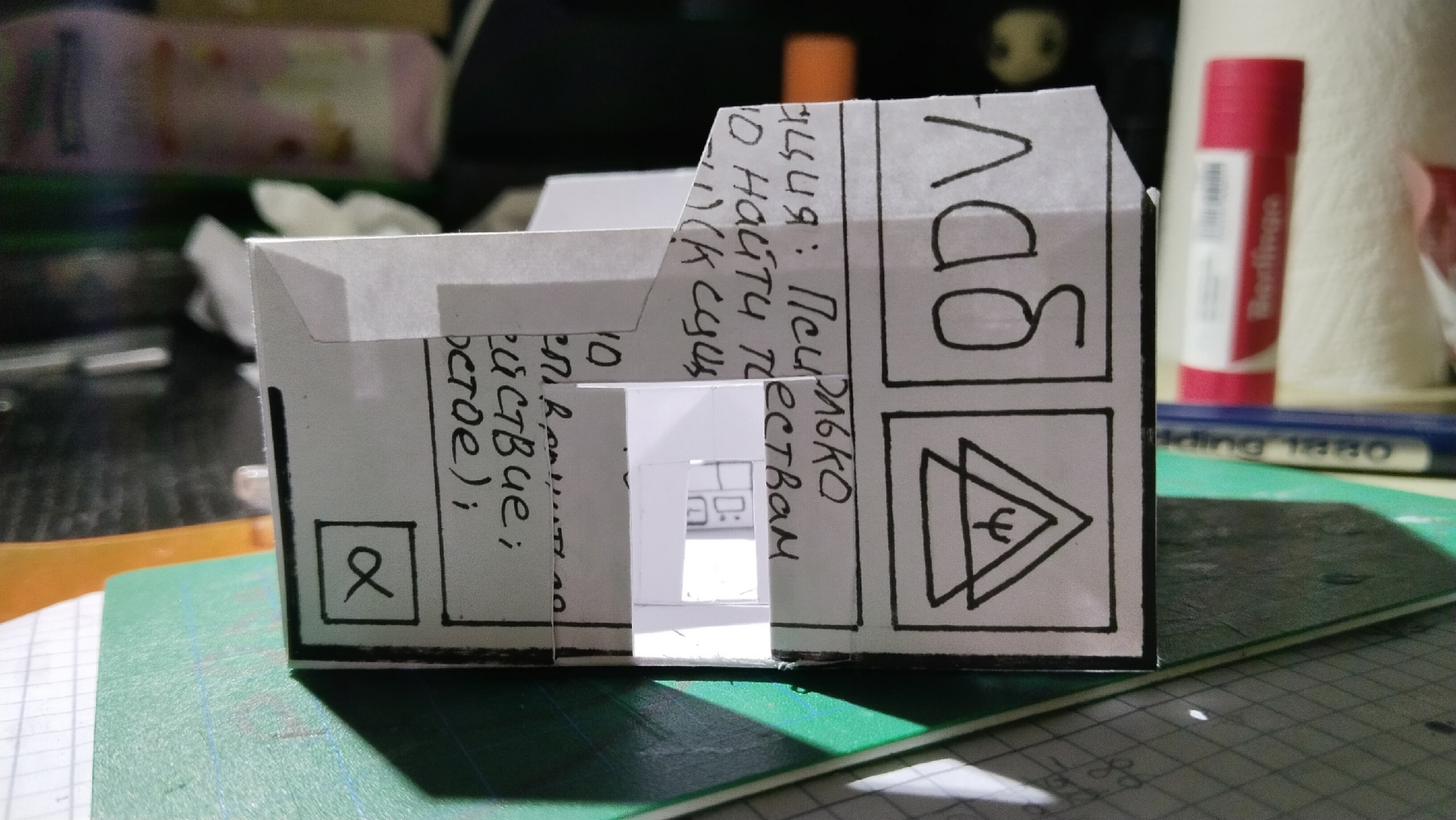 Сложные конструкции могут набирать до нескольких миллиметров в толщину. И если просто согнуть обложку по форме, попытавшись обхватить внутренности, получится неровно, не точно и некрасиво. А если еще и дверь поспешить прорезать, то обложка вообще может порваться в момент натягивания. Так что впредь будем это учитывать (а до этого нам везло и все получалось как-то само собой :З ).