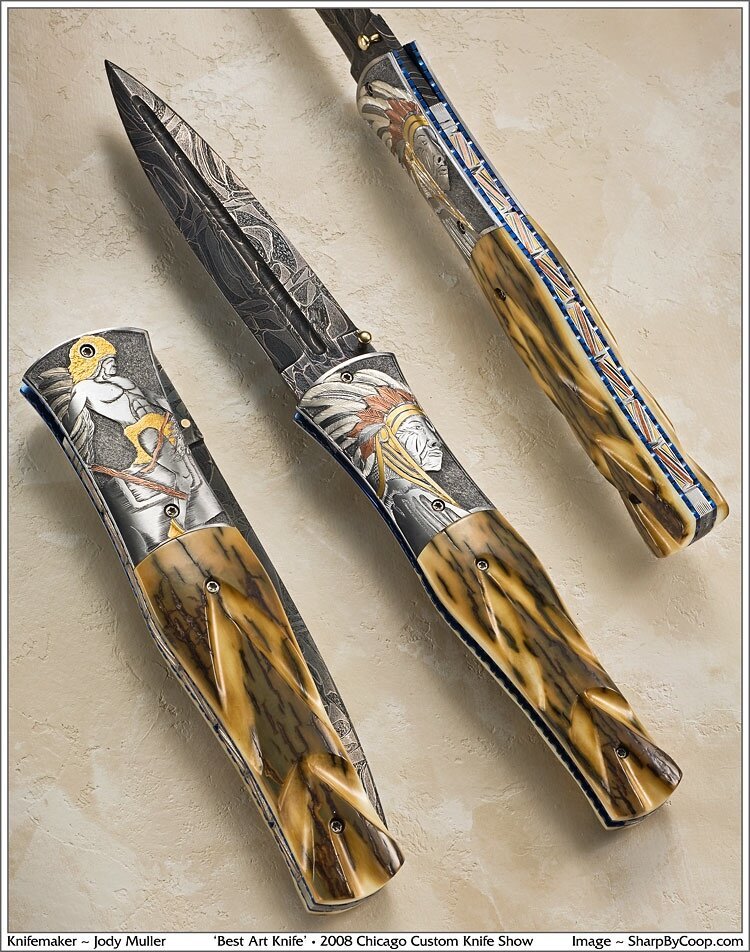 Американский ножедел (Jody Muller) изготовил свой первый нож в возрасте двенадцати лет, а в 1994 году, при помощи отца, он впервые выковал дамасскую сталь.