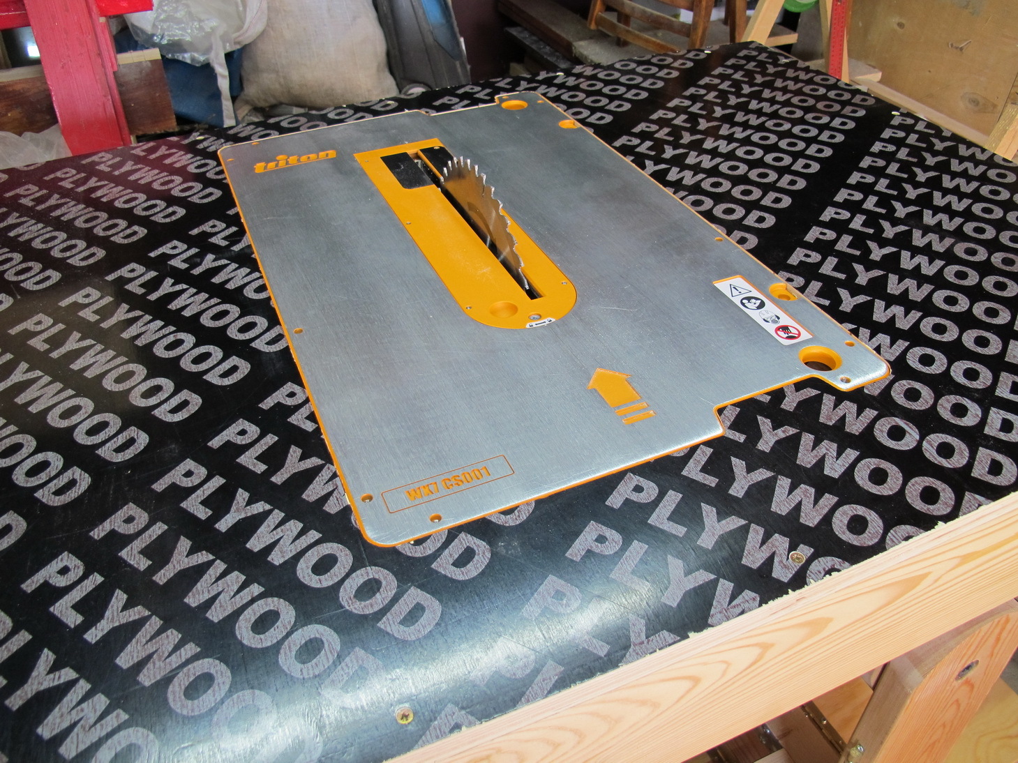 Самое сложное - врезать в столешницу пильный узел. Решил сначала собрать вокруг него шаблон из фанеры, по которому затем фрезой с верхним подшипником оформлю отверстие в столешнице верстака.