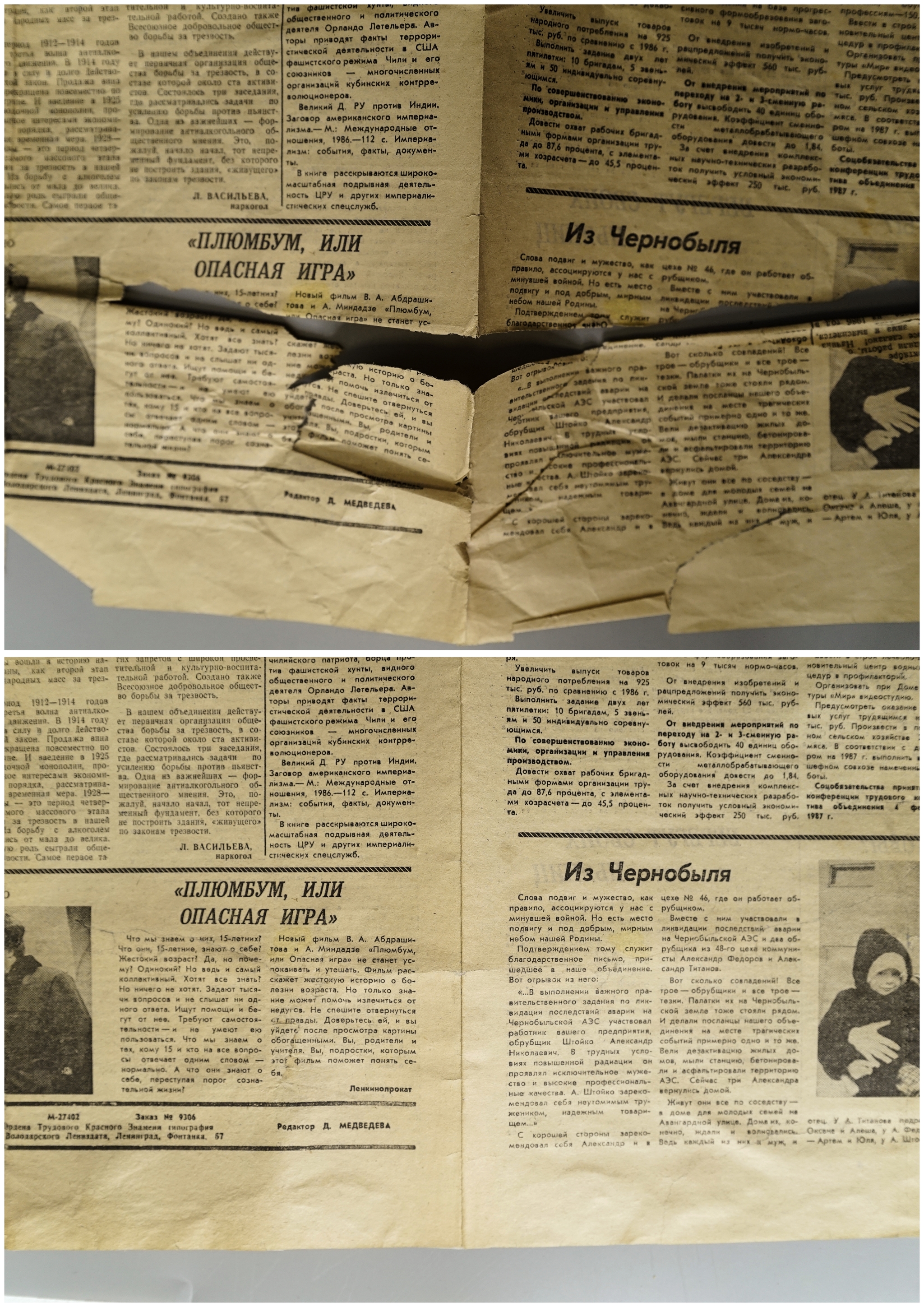 В итоге, когда газета полностью высохла и расправилась, получился отличный результат. Все разрывы удалось свести так, что с лицевой стороны их вообще не видно. Статья теперь читается полностью, и газета обрела вторую жизнь.