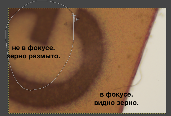 Теперь внимание: первая картинка: зерно исчезает там где теряется фокус. Что доказывает: эти точки находятся именно на поверхности плёнки. Каждое зерно — не пиксель, не пара пикселей, а дохренища пикселей. Этого уже достаточно, чтобы понять что это не шум матрицы.