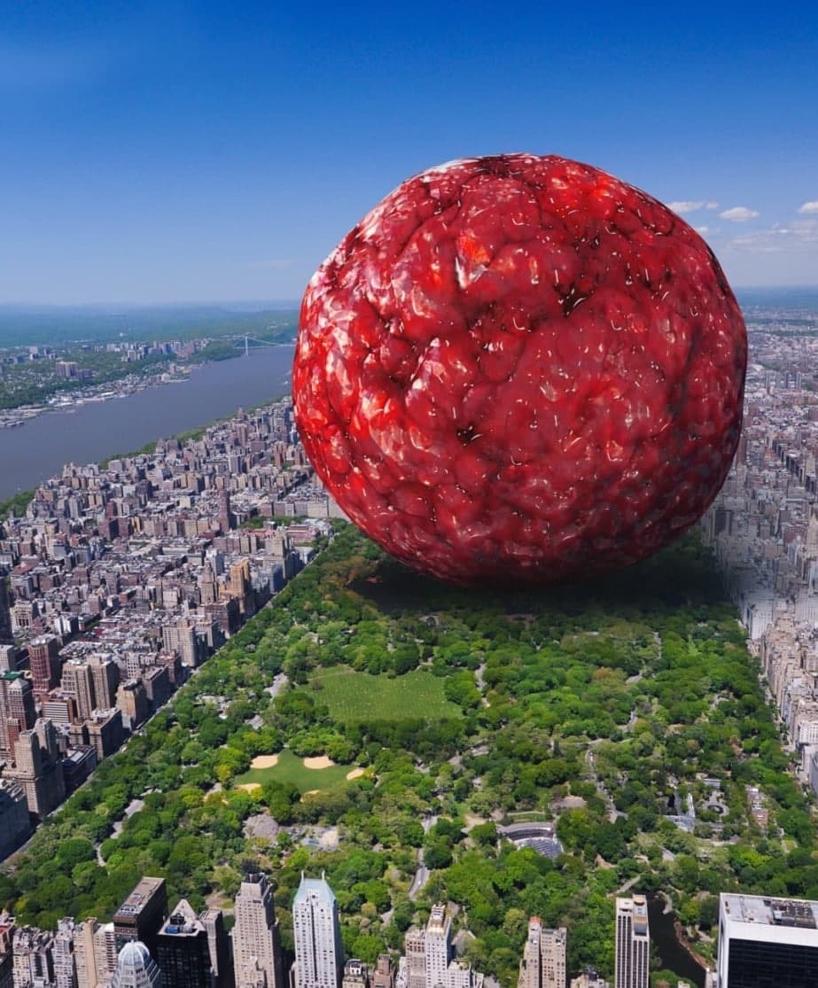Помнится, была тут картинка с омерзительным мясным шаром на фоне Нью–Йоркского Центрального парка — такой, мол, размер, будет иметь человечество, если злая сила скатает его в кулаке. Получилось наглядно и как–то обидно: всего–то размером с парк шарик оказался. Точнее — с ширину парка...