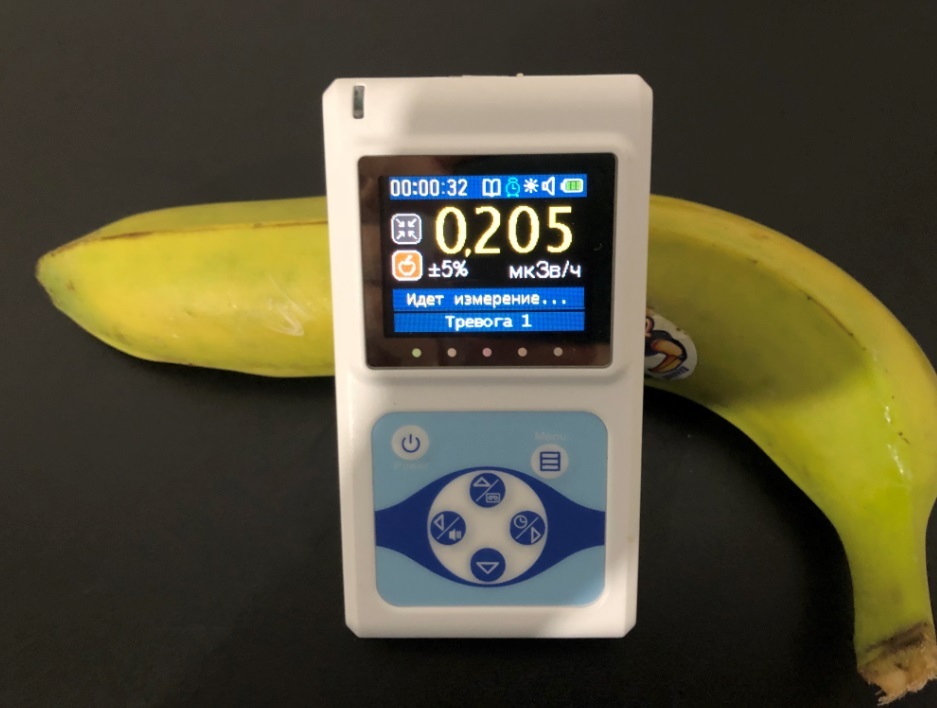 Мы знаем, что бананы являются одними из самых радиоактивных ягод в мире. В них содержится Калий-40- это нестабильный изотоп калия, с периодом полураспада около 1,25 миллиардов лет. который и фонит.