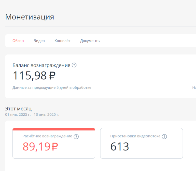 Расчёт вознаграждения начнётся с 1-го числа месяца, в котором была подключена монетизация.